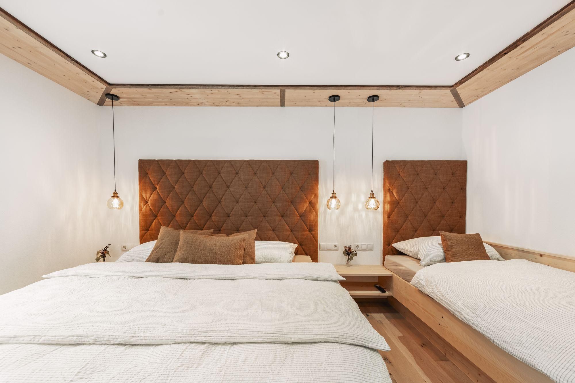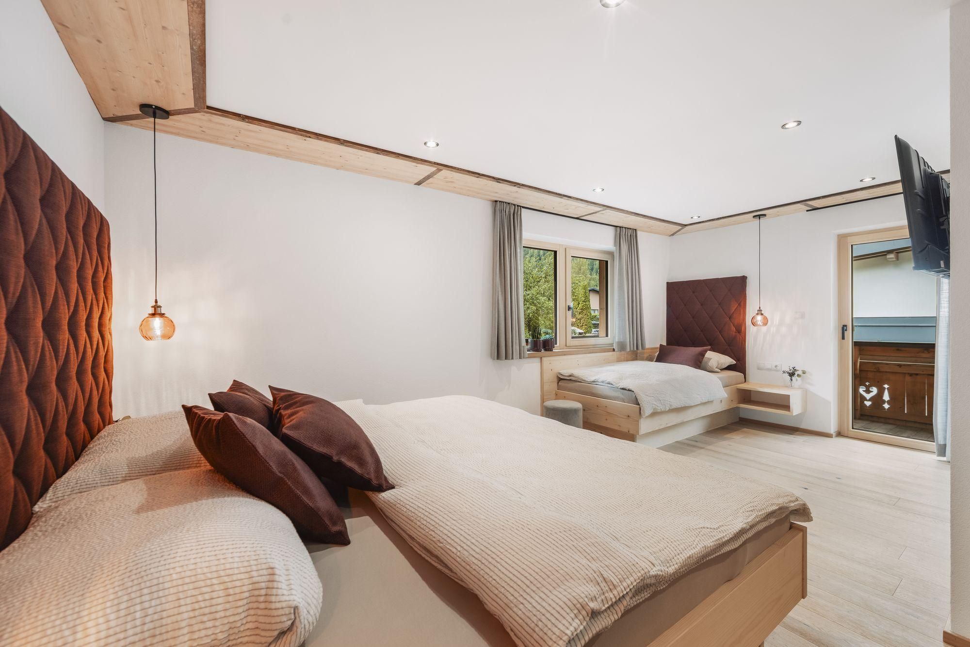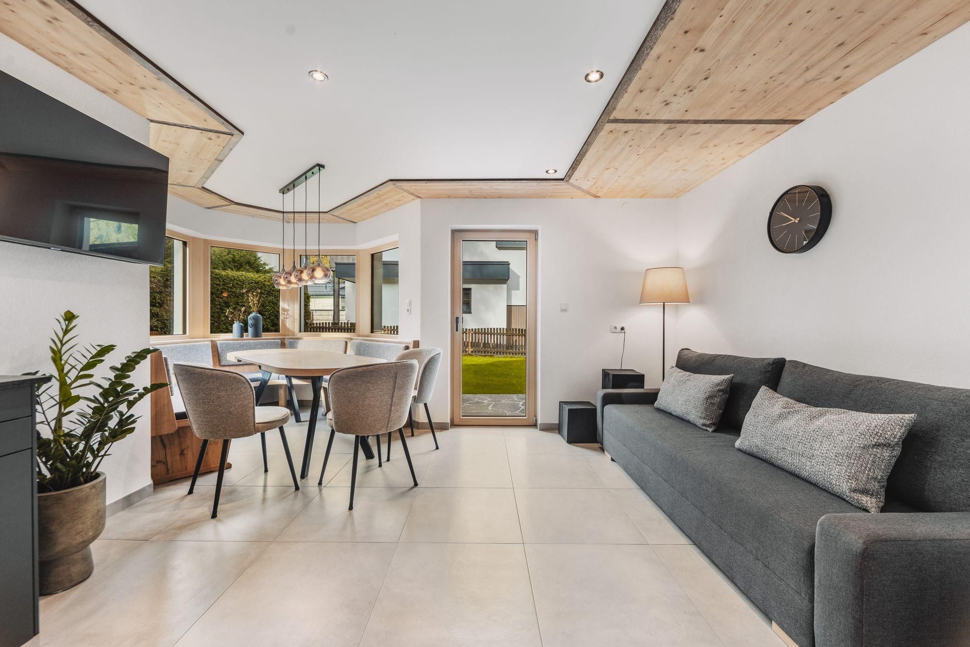Die komplett neu renovierte Doppelhaushälfte (ca. 115 m²) überzeugt mit hochwertigem Wohnkomfort. Zur Ausstattung gehören ein Doppelzimmer sowie zwei Dreibettzimmer – jedes davon mit eigenem Badezimmer inkl. Dusche/WC. Herzstück des Hauses ist die voll ausgestattete Wohnküche (Cerankochfeld, Backrohr, Kühlschrank mit großem Gefrierfach, Nespresso- und Filterkaffeemaschine, Geschirrspüler, Mikrowelle, zwei Toaster, Wasser- und Eierkocher uvm.). Die Doppelausziehcouch schafft zusätzlichen Schlafraum für bis zu zwei Personen. Im privaten Garten und auf der Terrasse eröffnet sich ein einzigartiges Bergpanorama – ideal zum Entspannen und Genießen. Eine eigene Waschmaschine und ein Wäschetrockner runden das Angebot ab. Ein besonderes Highlight ist das Spielzimmer, das für Unterhaltung und Abwechslung sorgt.
