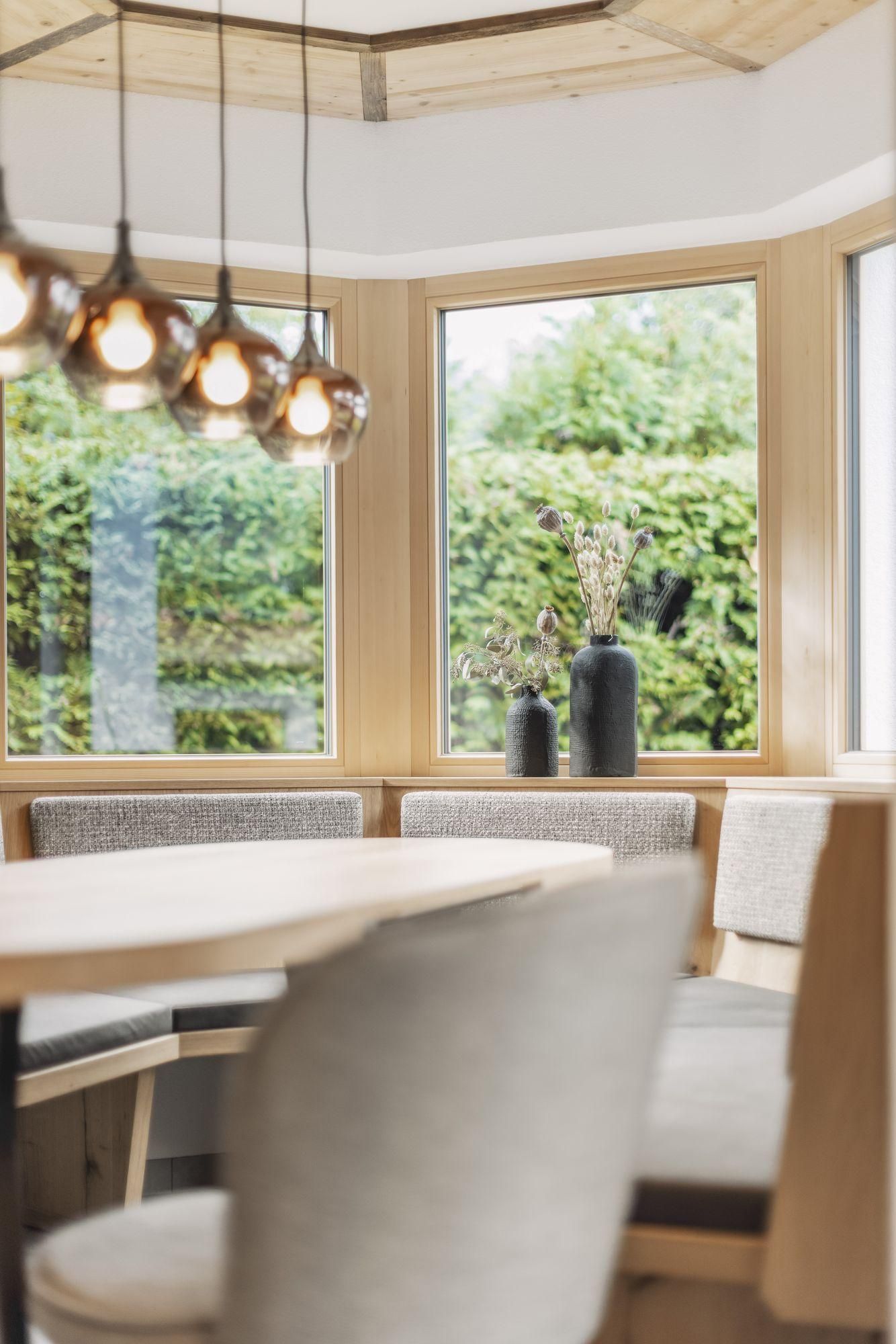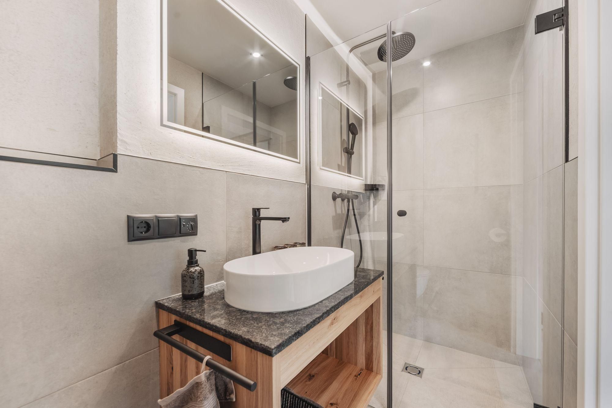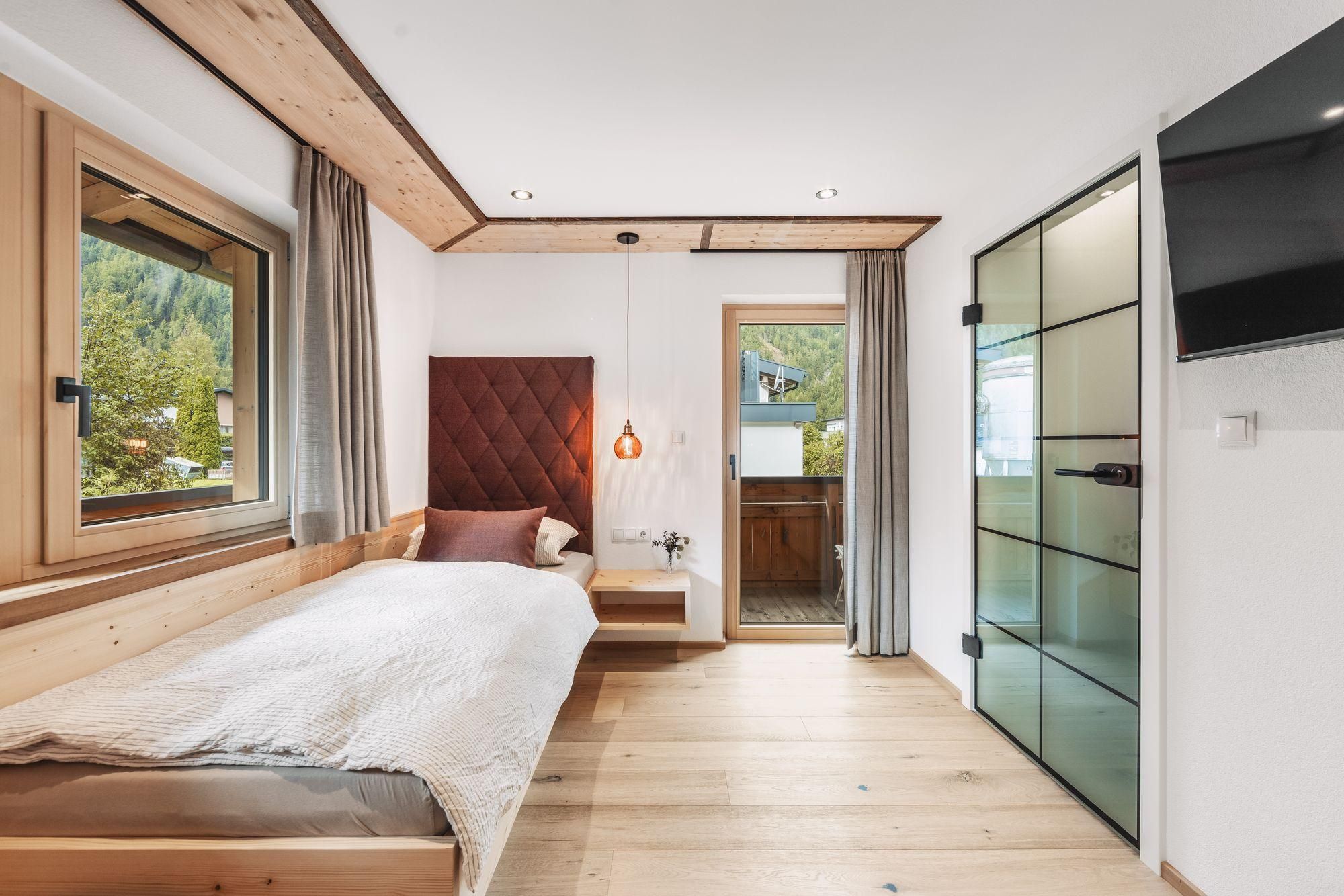 Die komplett neu renovierte Doppelhaushälfte (ca. 115 m²) überzeugt mit hochwertigem Wohnkomfort. Zur Ausstattung gehören ein Doppelzimmer sowie zwei Dreibettzimmer – jedes davon mit eigenem Badezimmer inkl. Dusche/WC. Herzstück des Hauses ist die voll ausgestattete Wohnküche (Cerankochfeld, Backrohr, Kühlschrank mit großem Gefrierfach, Nespresso- und Filterkaffeemaschine, Geschirrspüler, Mikrowelle, zwei Toaster, Wasser- und Eierkocher uvm.). Die Doppelausziehcouch schafft zusätzlichen Schlafraum für bis zu zwei Personen. Im privaten Garten und auf der Terrasse eröffnet sich ein einzigartiges Bergpanorama – ideal zum Entspannen und Genießen. Eine eigene Waschmaschine und ein Wäschetrockner runden das Angebot ab. Ein besonderes Highlight ist das Spielzimmer, das für Unterhaltung und Abwechslung sorgt.