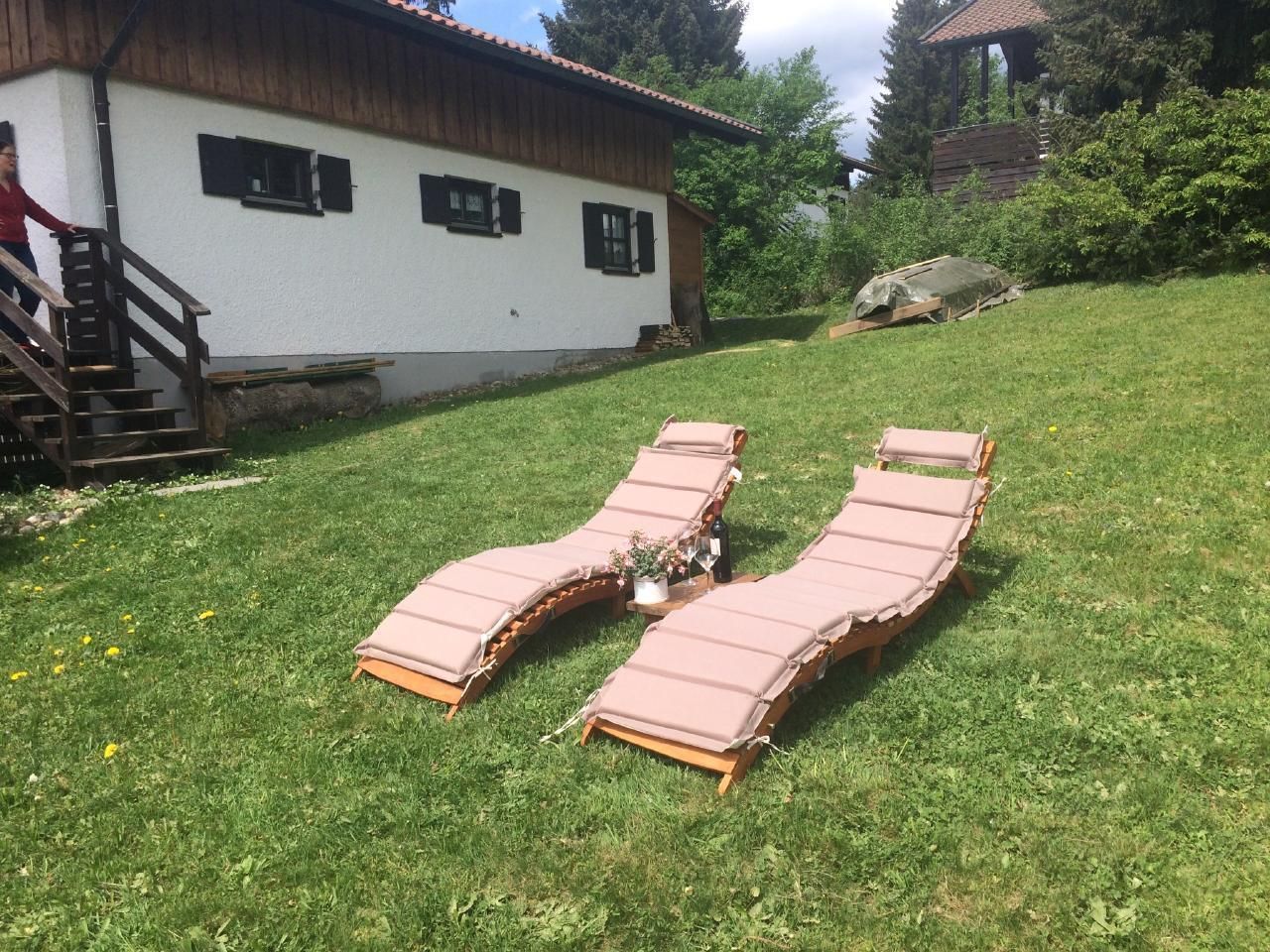 Ferienhaus in einem Waldferiendorf, umgeben von Bäumen und Natur, nur eine halbe Stunde zu Fuß zum hübschen Ort Regen, mit dem Auto 5 Minuten entfernt, große Veranda und Garten zum Sonnen und Grillen, im Winter zum Entspannen. Kachelofen. In unserem Ferienhaus sind alle Nebenkosten (Strom / Heizung, Wasser, Wlan, Holz und die Endreinigung) INKLUSIVE.