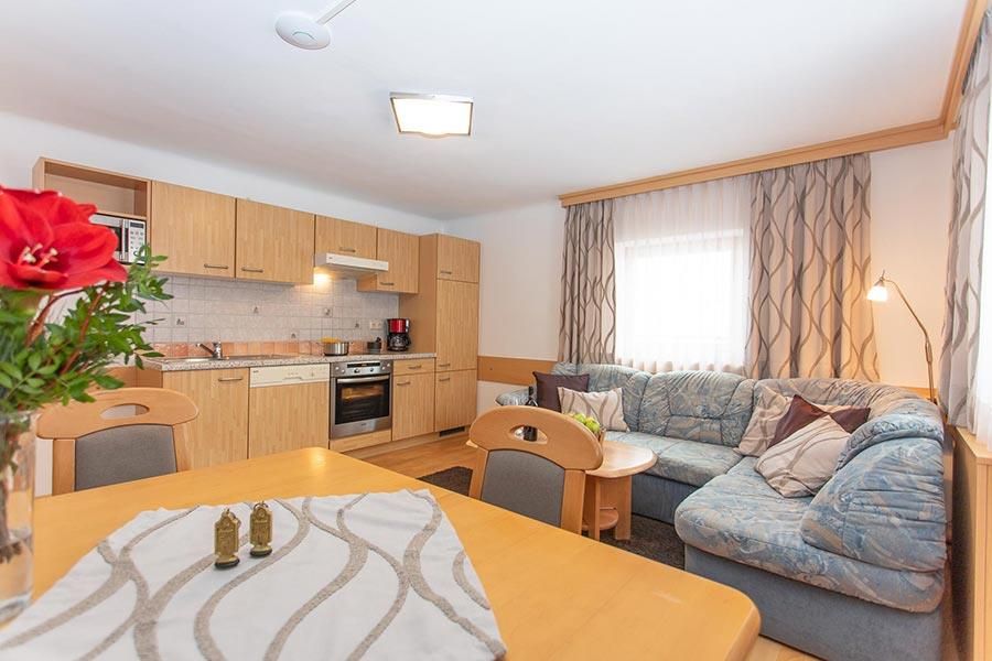 Ferienwohnung mit gratis W-Lan, 2 Schlafzimmern, davon eines mit getrennten Betten und eines mit einem Doppelbett. Eigener Wohnraum mit Küchenzeile, Dusche, 2 WC, 3 Kabel-TV-Geräte mit moderner LCD-Screen, Balkon und große Terrasse mit Griller. Zusatz Schlafzimmer ab 5 Personen.