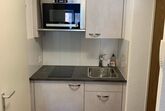 Die Wohnung ist wirklich klein, aber urgemütlich.(15qm) Es hat ein Ausziehsofa, einen kl. Tisch, mit Stühlen, Fernsehen, wie einen großen Kleiderschrank. Die Küche hat ein Ceranfeld mit 2 Kochstellen, wie auch eine Mikrowelle mit Grillfunktion, Auftauautomatilk, aber auch der Möglichkeit eine Pizza oder Wähe zu backen.