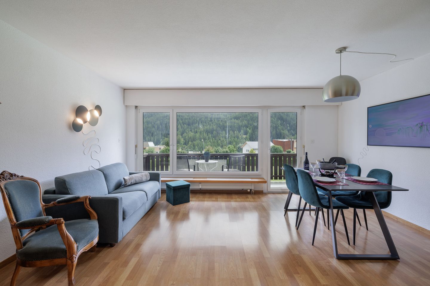 Gemütliche, kinderfreundliche, stilvolle 2,5-Zimmer-Wohnung, ca. 60m² Wohnfläche, komfortabel eingerichtet, sehr ruhig gelegen und doch gut erschlossen. Sonniger Balkon mit herrlichem Blick auf die Unterengadiner Bergwelt und die grosse Spielwiese.