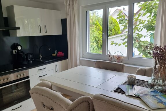 Freuen Sie sich auf ungestörte Momente der Erholung in unserer Ferienwohnung, die mit einem eigenen Eingang und einer flexiblen Schlüsselbox für eine problemlose Anreise sorgt – auch bei späterer Ankunft. Ihr Auto parken Sie sicher und bequem unter dem für Sie reservierten Carport, der bei Regenwetter eine gemütliche Überdachung bietet. Trotz der gelegentlichen Geräusche, die das Holzhaus mit sich bringt, garantieren wir Ihnen Privatsphäre und Ruhe für einen rundum angenehmen Aufenthalt.