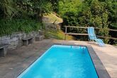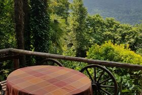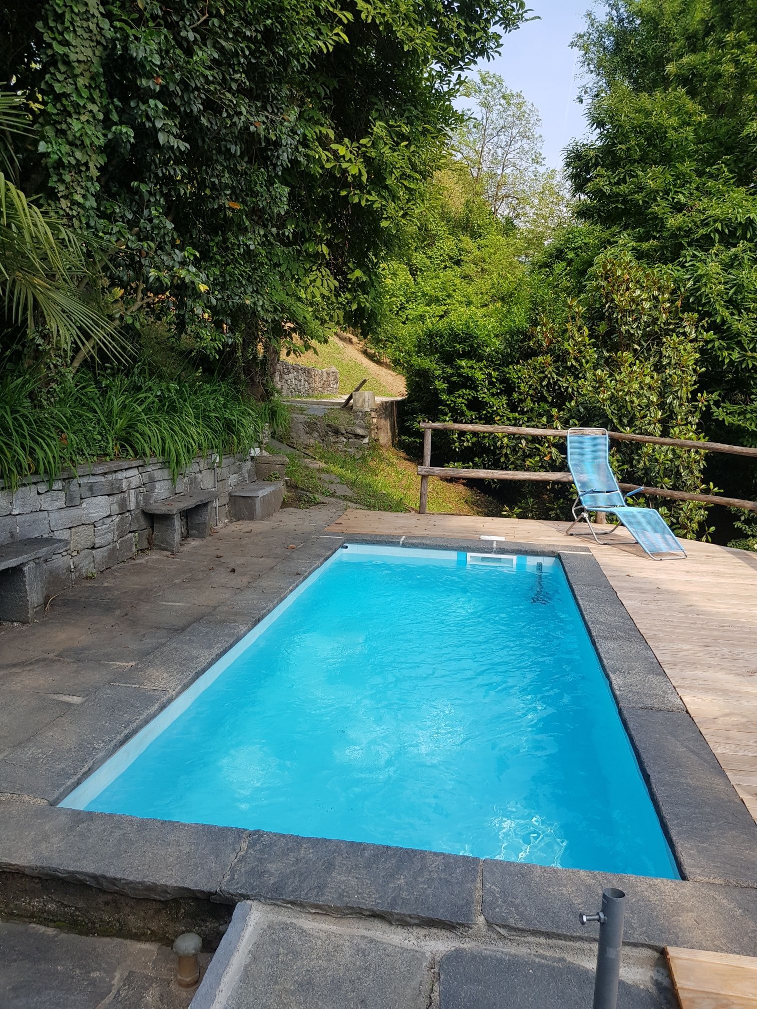 Der Außenbereich der Casa Castagna ist wahrlich ein Highlight dieser Unterkunft. Das eigene Schwimmbassin mit den Maßen 2 x 5 m ist ideal, um an warmen Tagen eine erfrischende Abkühlung zu genießen. Mehrere Terrassen und ein Balkon bieten vielfältige Möglichkeiten, die Sonne und die Stille der Umgebung zu genießen. Das Ferienhaus ist umgeben von einem Kastanienwald und eigenen Weinreben, was zahlreiche private Ecken zum Lesen, Spielen oder einfach nur zum Entspannen bereithält.
