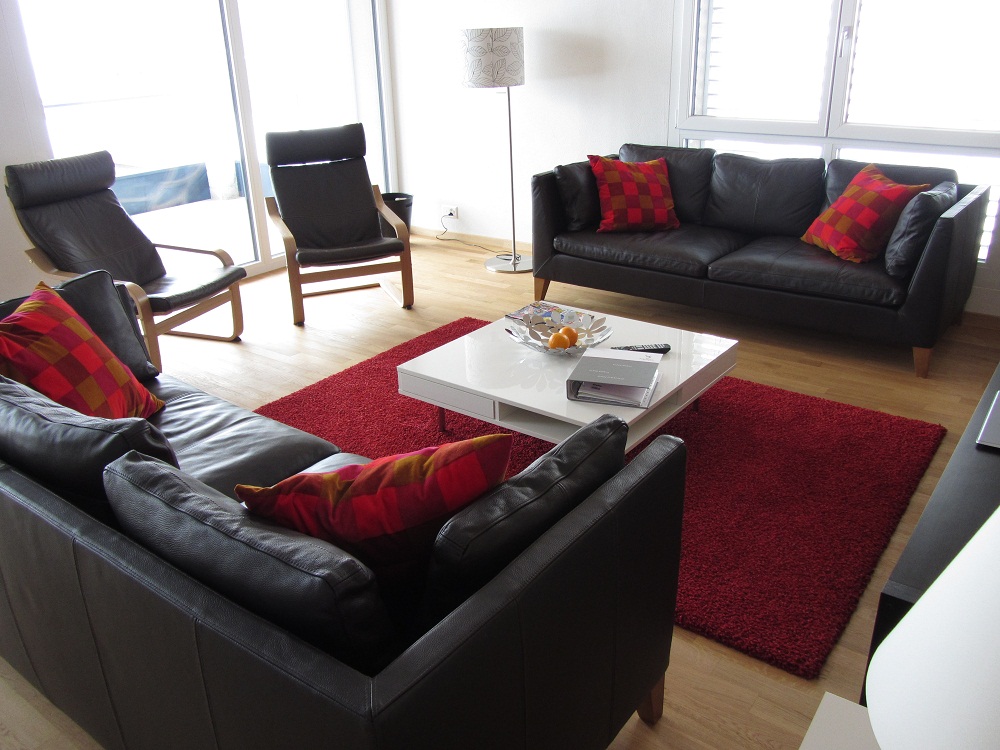 4-Zimmer-Wohnung im 1. Stock, Südwestlage, geräumig und hell, komfortabel und schön eingerichtet: Wohnzimmer mit Satelliten-TV (Flachbildschirm). Ausgang zum Balkon. 1 Zimmer mit 1 Doppelbett, 1 Zimmer mit 2 Einzelbetten, 1 Zimmer mit ausziehbarem Einzelbett. Grosse, offene Küche (Backofen, Geschirrspüler, Glaskeramikherd, Tiefkühler, Kochinsel). Bad/WC und Dusche/WC. Grosser Balkon 10 m2, Südwestlage. Balkonmöbel. Sehr schöne Sicht auf die Berge und das Tal. Zur Verfügung: Waschmaschine, Wäschetrockner. Internet (Wireless LAN). Parkplatz, Garage Nr. 3.