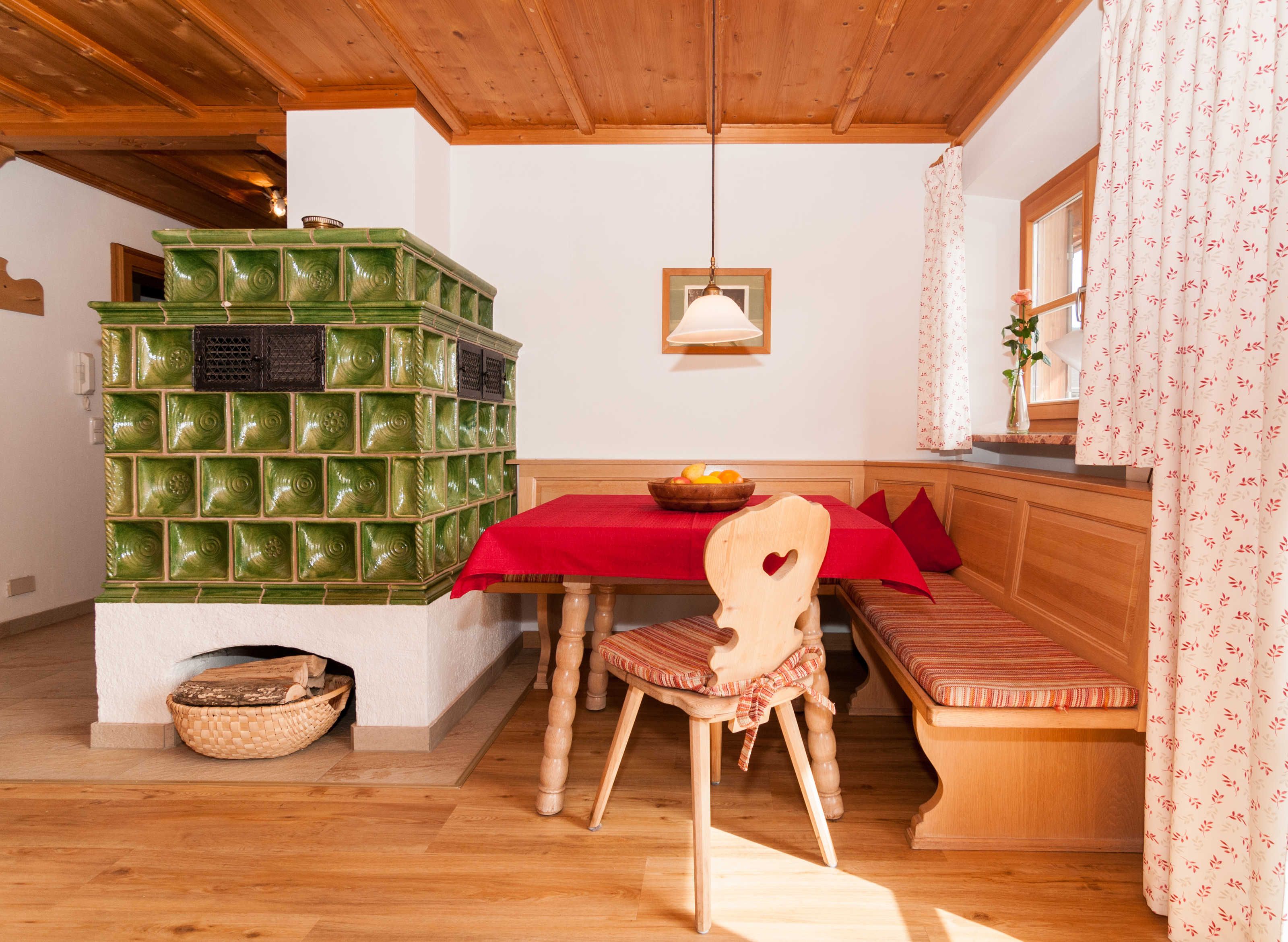 Die Ferienwonungen befindet sich im 1. Stock, sind mit Dusche und Bad/WC, zwei Schlafräumen, Wohnküche, Kachelofen, TV, Telefon, Radio und Safe ausgestattet.
