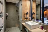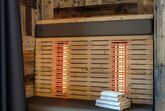 Smartes Doppelzimmer mit Balkon und Infrarotbank im 1. Obergeschoss.