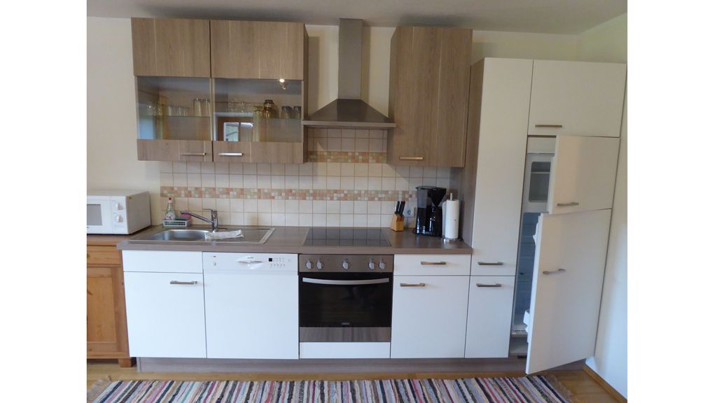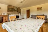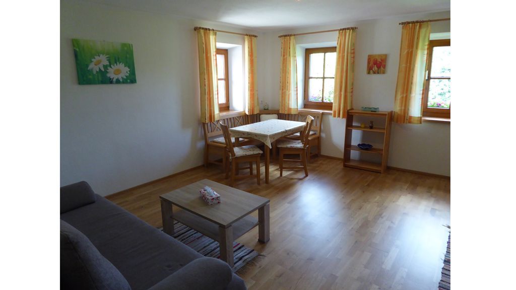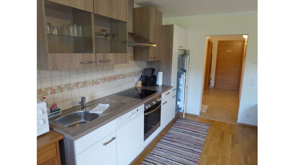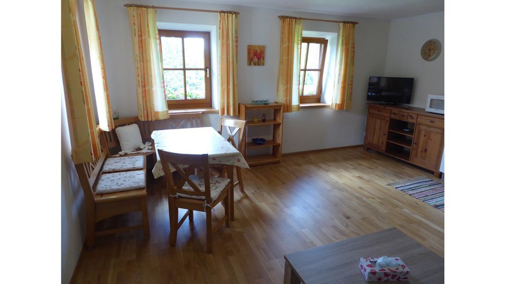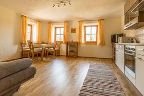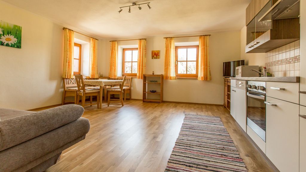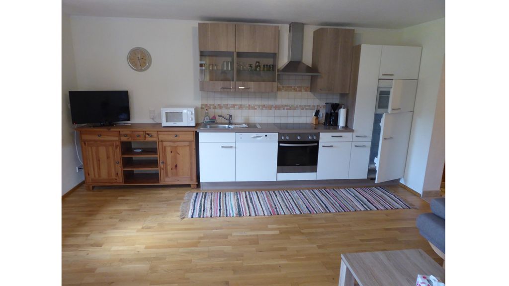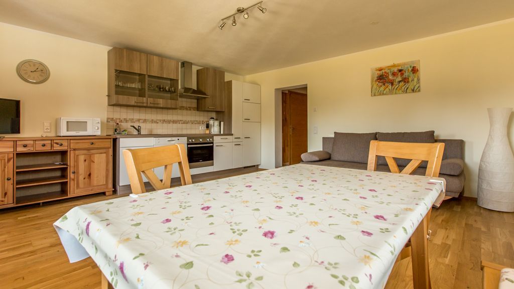 Die im ländlichen Stil eingerichtete Ferienwohnung (45 m²), verfügt über einen geräumig, gemütlichen Wohnraum, mit Küche und Ausziehcouch. Weiters ist die Küche mit einem großen Geschirrspüler und Mikrowelle ausgestattet. Das kleine, aber feine Schlafzimmer und das schöne Bad passen perfekt zum Einrichtungsstil.