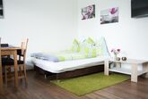 • Wohnraum mit Küche: Der großzügige Wohnbereich lädt zum Verweilen ein. Die Küche ist bestens ausgestattet, die Schlafcouch bietet zusätzlich Platz für 1–2 Personen, sodass Du mit Freunden oder Familie flexibel übernachten kannst.
