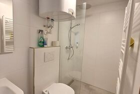 Direkt im Zimmer befindet sich ein Badezimmer mit Dusche, WC, Handtuchtrockner und Föhn. Für kulinarische Genüsse steht Ihnen eine gemeinsam genutzte Küche mit Kochgelegenheit, Esstisch, Geschirr und Kühlschrank zur Verfügung.