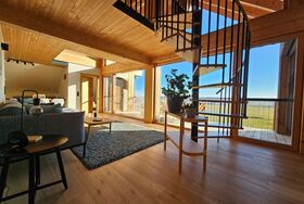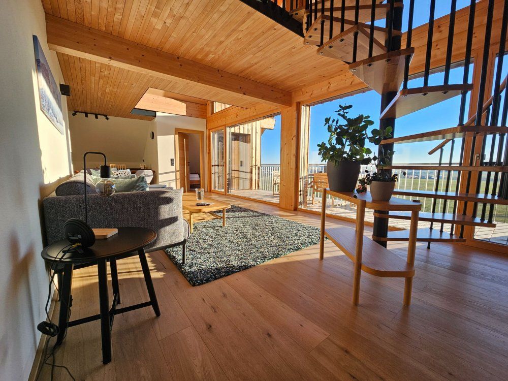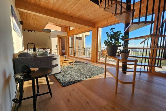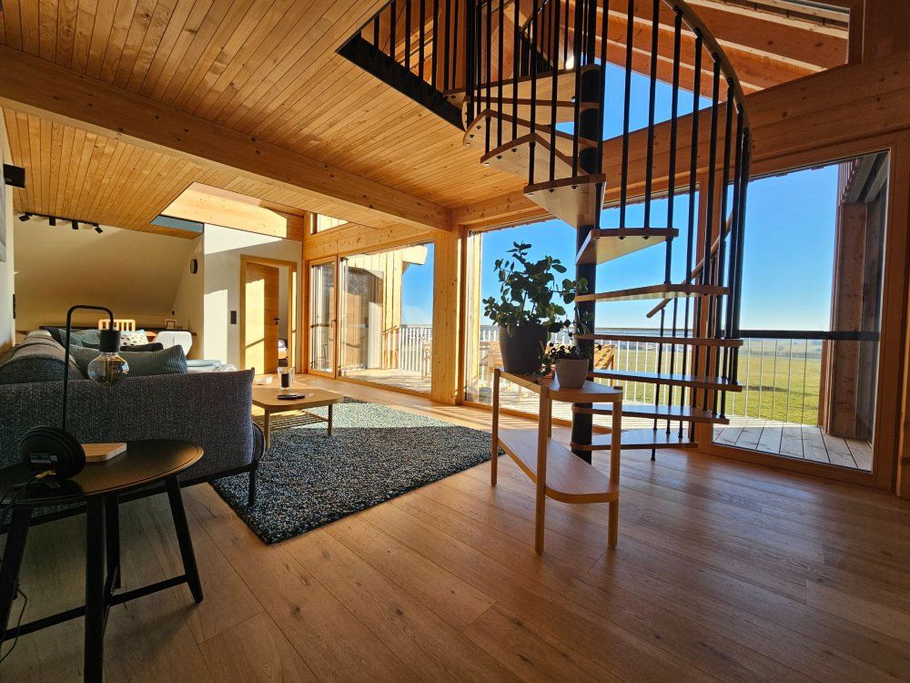 Zudem geht es über eine Wendeltreppe nach oben in die Galerie. Dort befindet sich ein weiteres Doppelbett sowie ein ruhiger Leseplatz mit einzigartiger Aussicht!