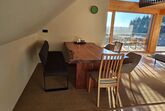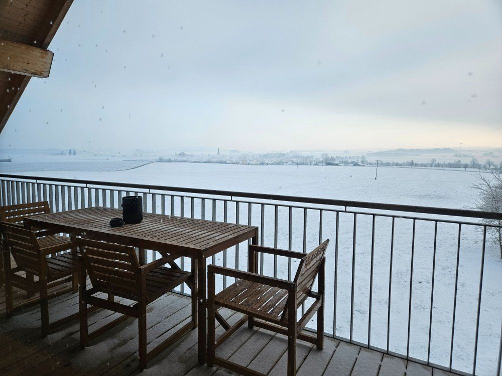 Vom Essbereich aus hat man ebenso den Blick auf die großen Panoramafenster, wie auch auf den Flachbild-TV. Aber von der großen gemütlichen Sofa-Landschaft hat man einen grandiosen unverbauten Panoramablick auf die Allgäuer Landschaft. Dieser Platz, wie auch die Sitzgelegenheiten auf dem großen Balkon laden zum Entspannen und Verweilen ein.