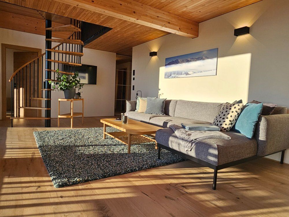 Es erwartet Sie viel helles Holz, Licht und ein atemberaubend schöner Ausblick über den Illerwinkel. Außerdem bieten wir Ihnen auf Anfrage einen Brötchenservice an. Die leckeren Semmeln und Brezen kommen direkt aus der örtlichen Familienbäckerei. Im Ort befinden sich neben größeren Supermärkten auch eine Bauernmetzgerei mit tollen Allgäuer Produkten der örtlichen Bauern. Wer viel Wert auf BIO Produkte legt, wird beim bekannten Hersteller Rapunzel fündig, der seinen Hauptsitz ebenfalls in Legau hat und neben einem eigenen Shop auch über ein Besucherzentrum mit eigener Bäckerei, Kaffeerösterei, Restaurant und Erlebnisspielplatz verfügt.