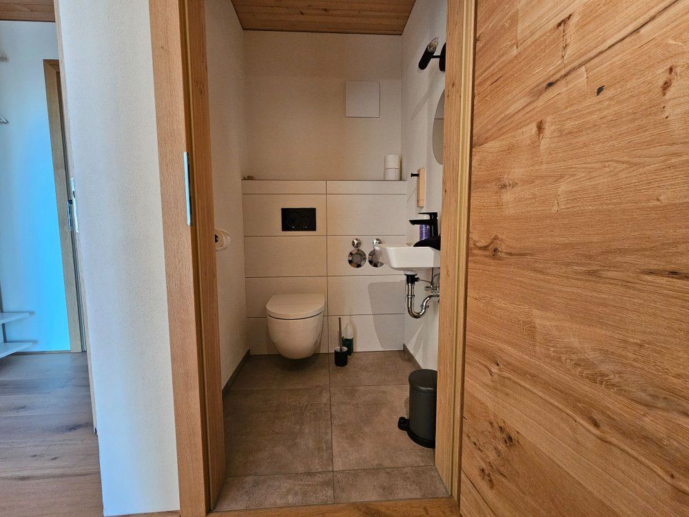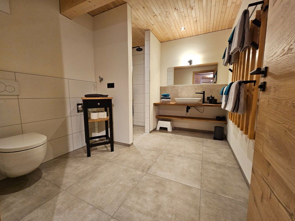 Die Ferienwohnung verfügt über ein großes, modernes Badezimmer mit reichlich Platz. Es gibt eine begehbare Dusche, ein WC sowie ein separates WC. Handtücher und Bettwäsche sind selbstverständlich vorhanden.
