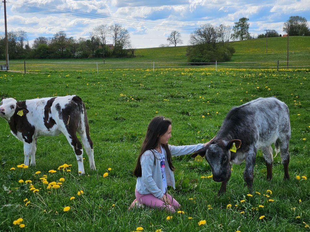 Von Grün umgeben, genießt man hier absolute Ruhe mitten in der Natur. Der Bauernhof befindet sich in wunderschöner Alleinlage mit Panoramablick und ohne Durchgangsverkehr. Wir betreiben keine Milchviehhaltung mehr und widmen uns stattdessen ganz der Jungviehaufzucht, sodass von April weg immer Kälber verschiedenen Alters die Weiden rund um den Hof bevölkern. Gerne können Sie beim tränken und füttern mithelfen.