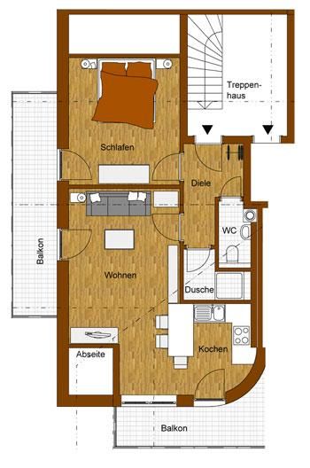 die beliebte Abendrot im DG bietet auf 65 qm moderne Gemütlichkeit. Die zum Wohnraum hin offene Traumküche ist vollausgestattet.