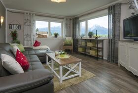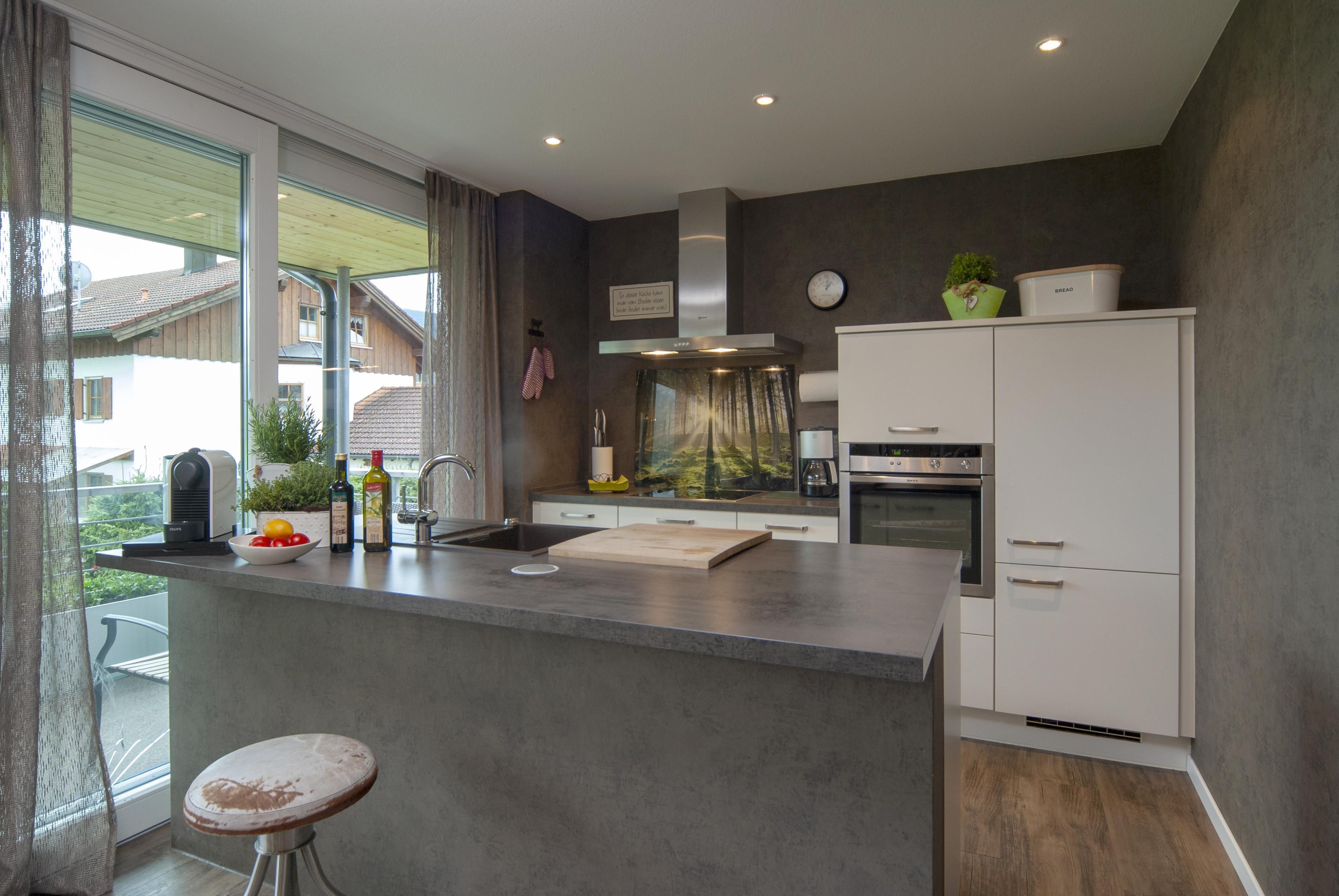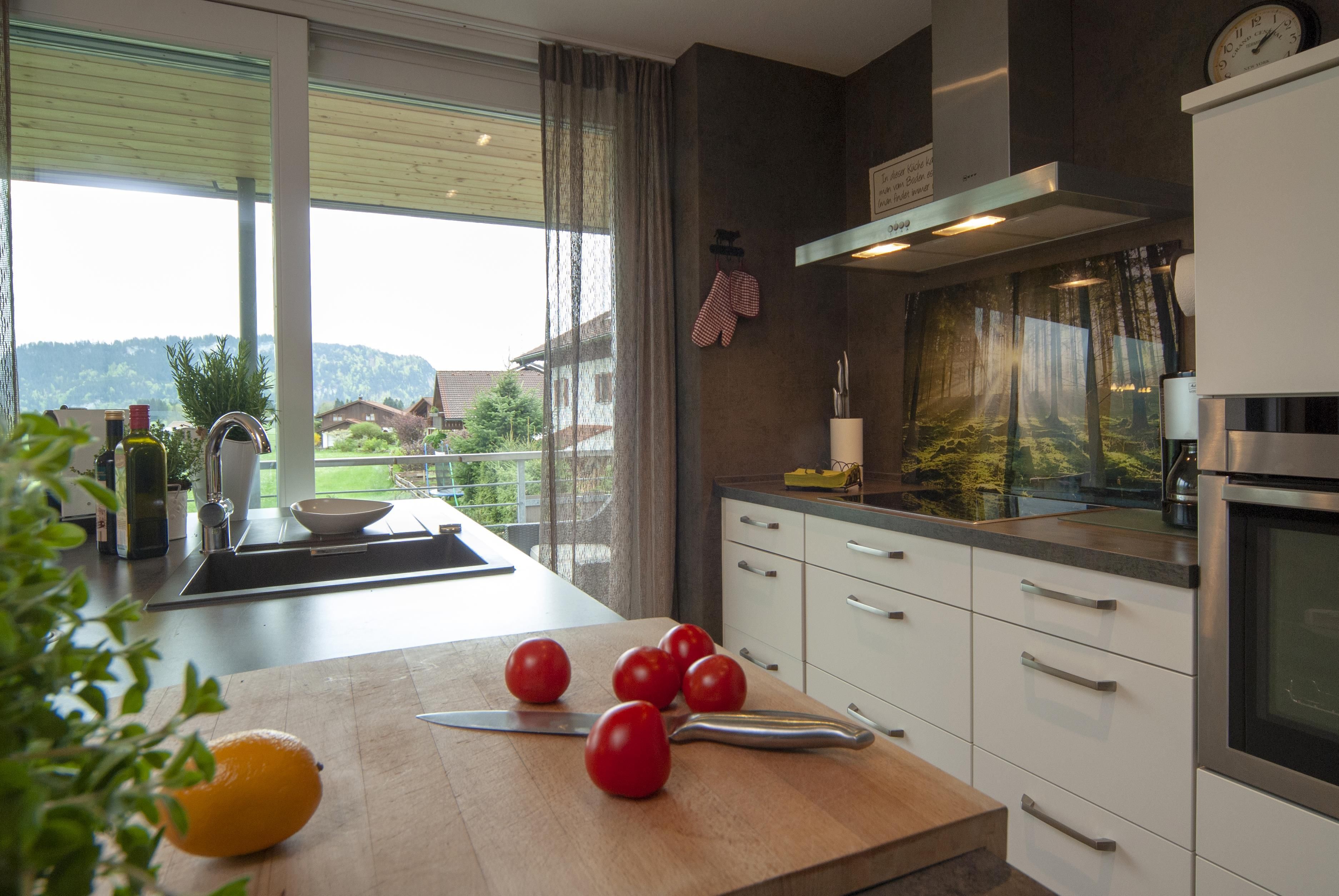großem Essplatz, die vollausgestattete Traumküche, 3 Schlafzimmer (mit Boxspringbetten)(Babybett zustellbar) und 2 Bäder mit ebener Dusche/2 WCs bieten viel Komfort. Ein möblierter Südbalkon mit bester Aussicht auf den Alpenhauptkamm lädt zum Relaxen.