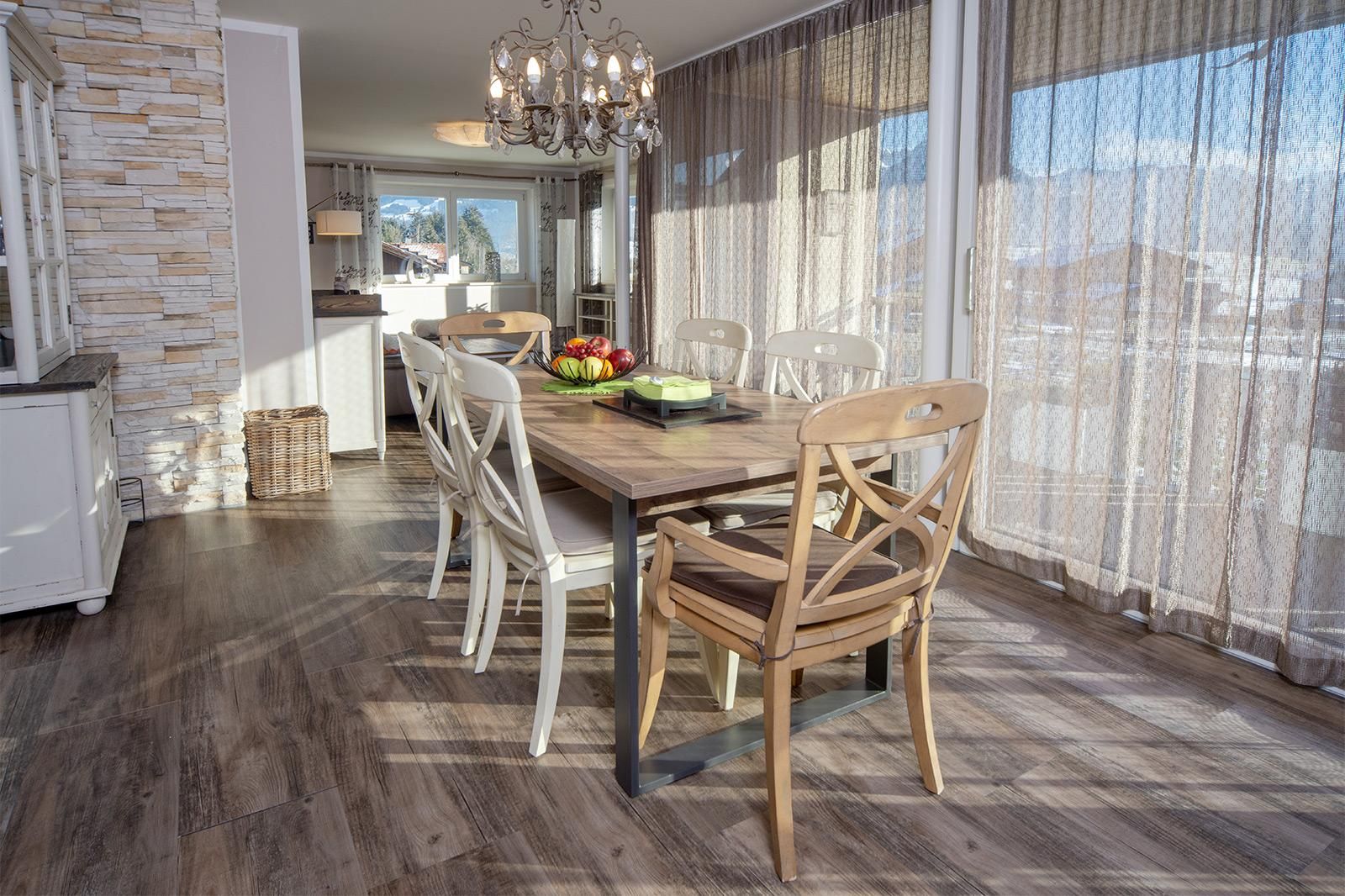 Die neue 4-Raum-Suite im OG bietet auf 120 qm eine exklusive Ausstattung im modernen Alpin-Look. Der lichtdurchflutete Wohnraum mit