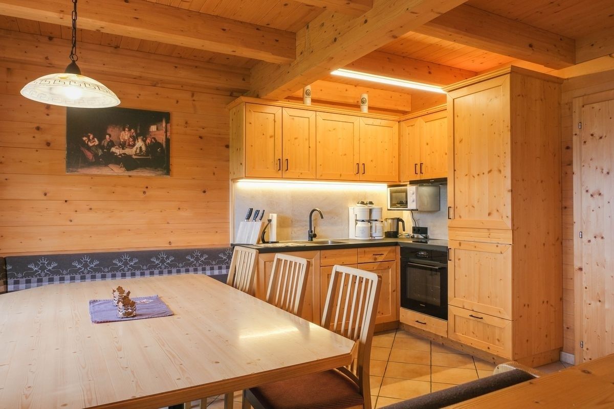 1 große Wohn- & Essküche mit Kachelofen