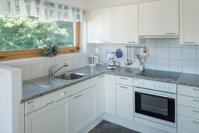 In der Wohnung steht eine Waschmaschine, sowie ein Wäschetrockner zur Benützung bereit. Die Küche ist komplett ausgestattet und verfügt über einen Glas Keramik Kochherd, einen Backofen, einen großen Kühlschrank mit Gefrierfach, eine Geschirrspülmaschine, eine Kaffeemaschine, eine Microwelle, sowie über einen Raceletteofen und ein Fonduegeschirr.