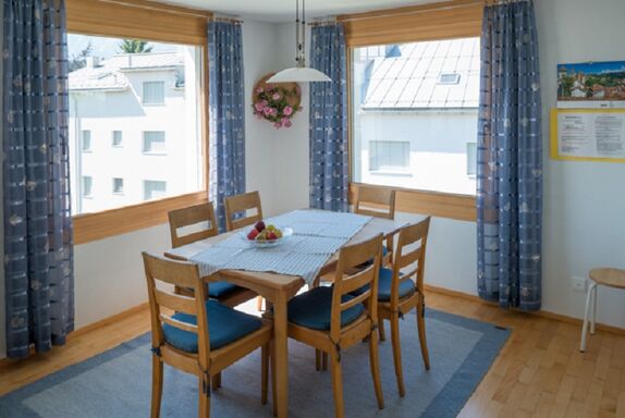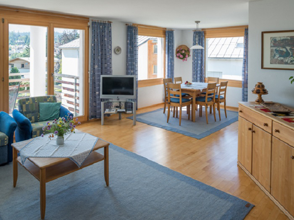 Mitten im schönen Flimser Dorfkern liegt die liebevoll eingerichtete 3.5 Zimmerwohnung nur 2 Gehminuten von den Bergbahnen und dem Einkaufscenter «Stenna» entfernt. Die helle Neubauwohnung, klassifiziert mit 4 Sternen Superior, bietet auf 82m2 Platz für 4 Gäste. Sie befindet sich in einem Mehrfamilienhaus und verfügt über zwei Schlafzimmer mit Doppelbetten und zwei Badezimmer mit Dusche bzw. Badewanne. Der Balkon mit Südausrichtung bietet einen atemberaubenden Blick auf die Signina Berggruppe. Ebenso lädt der offene Wohnraum mit Ess- und Küchenbereich, die voll ausgestattete Küche und der Kamin im Wohnzimmer zum Geniessen und Wohlfühlen ein.