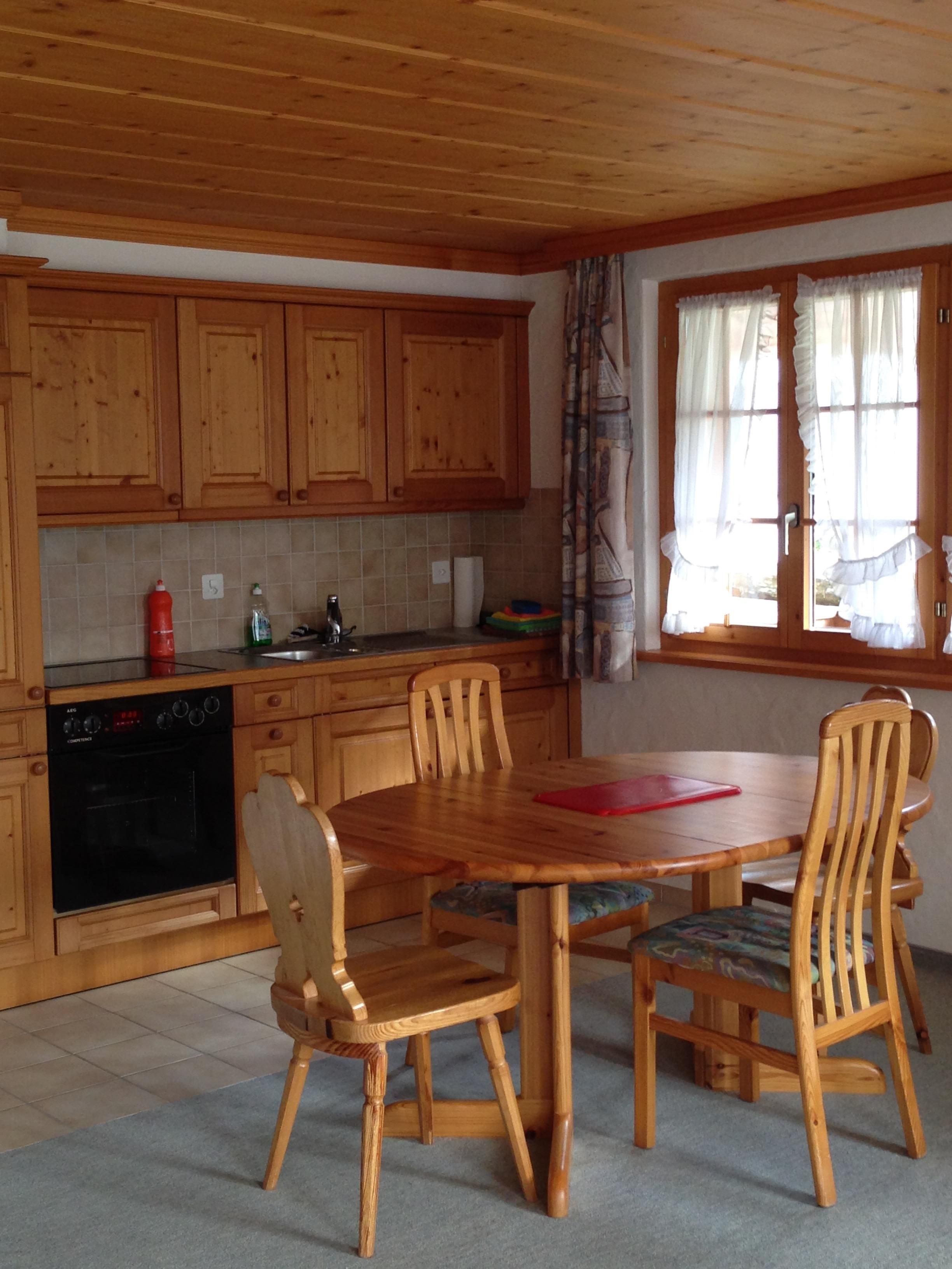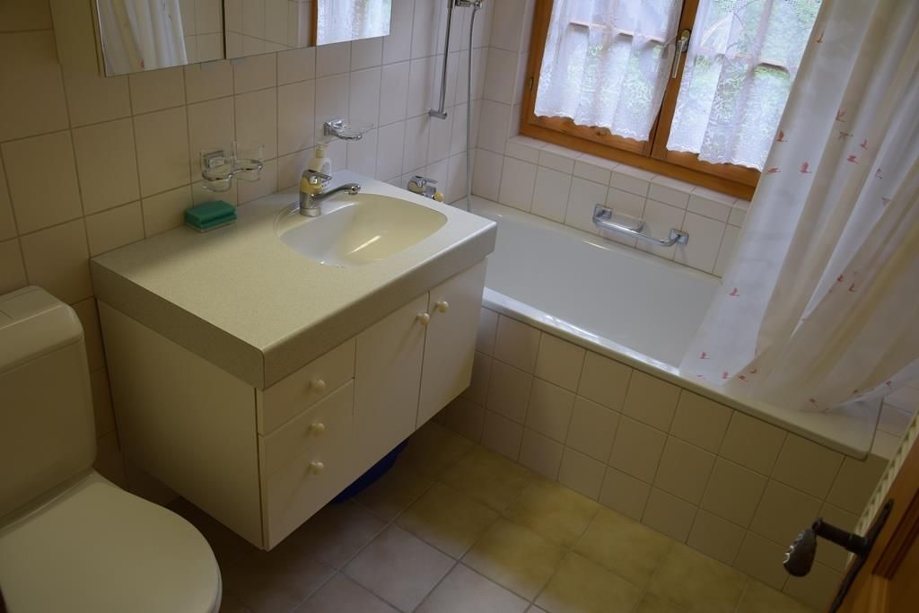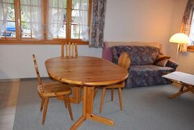 Gemütliche 2.5-Zimmerwohnung im ersten Stock mit einem Doppelschlafzimmer. Wohnküche mit ausziehbarem Sofa (zusätzliche Matratze zur Verfügung). Komplett ausgestattete Küche. Badezimmer mit Badewanne und Duschvorrichtung. Grosser Balkon mit wunderbarer Aussicht auf die umliegende Bergwelt.