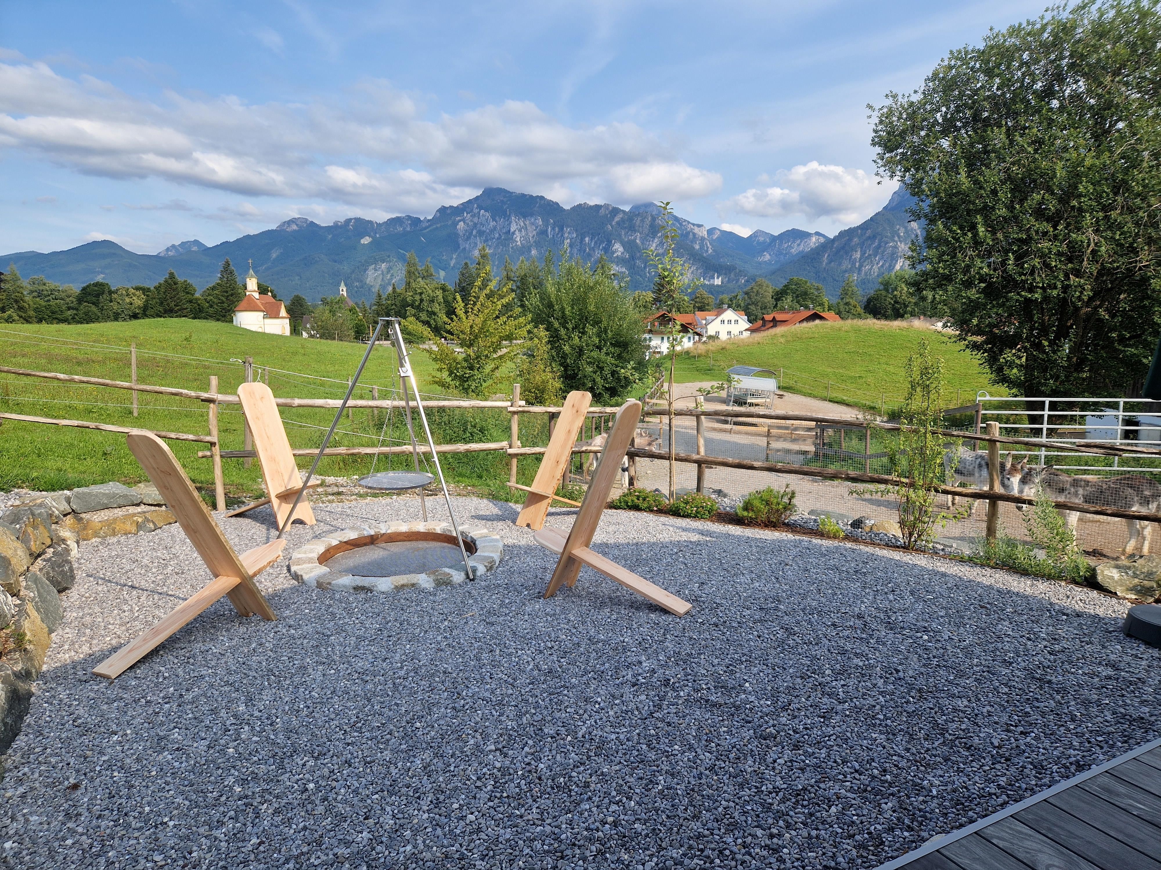 Unser Ferienhof ist ein ehemaliger Bauernhof, umgeben von 3,50 Hektar grünen Wiesen. Hier befinden sich zwei Offenställe mit Pferden und Eseln. Von unseren Hausbergen, dem „Galgenbichel“ und dem Stierbichel, erwartet Sie ein herrlicher Blick auf ganz Füssen, den Forggensee, das prächtige Bergpanorama und die Schlösser von König Ludwig II.