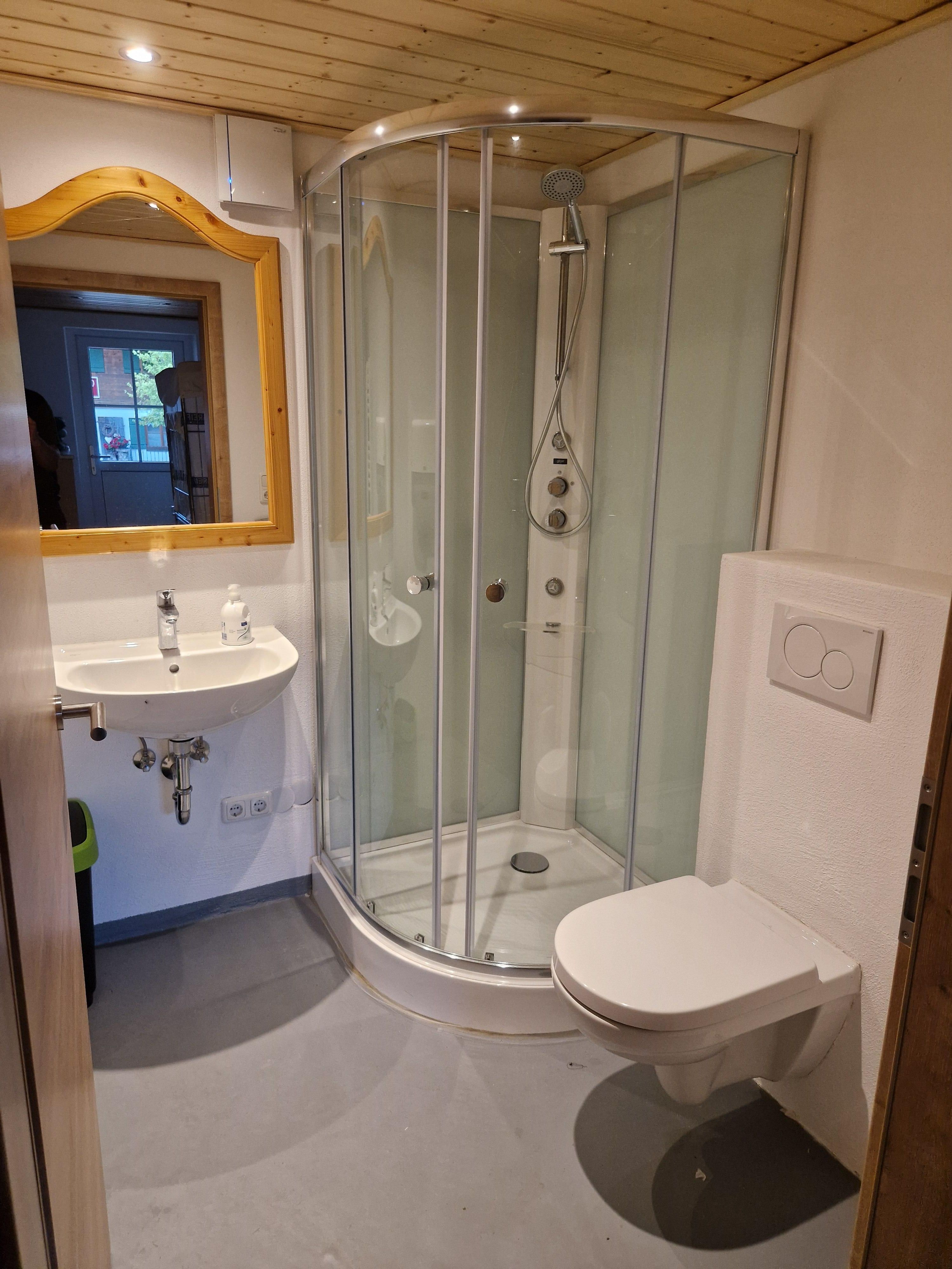 Im Hauptgebäude, 140 m entfernt, stehen Dir Dusche, WC und Föhn zur Verfügung.