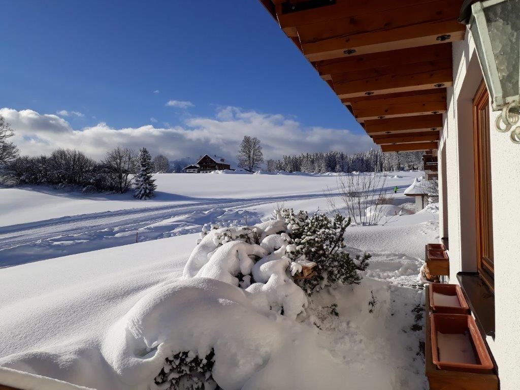 Herzlich willkommen in Ihrer Ferienwohnung im Haus Waldhorn. Unser Haus befindet sich in sonniger und freier Lage im Ortsteil Untere Leiten am Hochplateau von Ramsau am Dachstein. Während Ihres Urlaubes genießen sie einen fantastischen Ausblick in die Schladminger Tauern im Süden und nach Norden auf das eindrucksvolle Dachsteinmassiv.