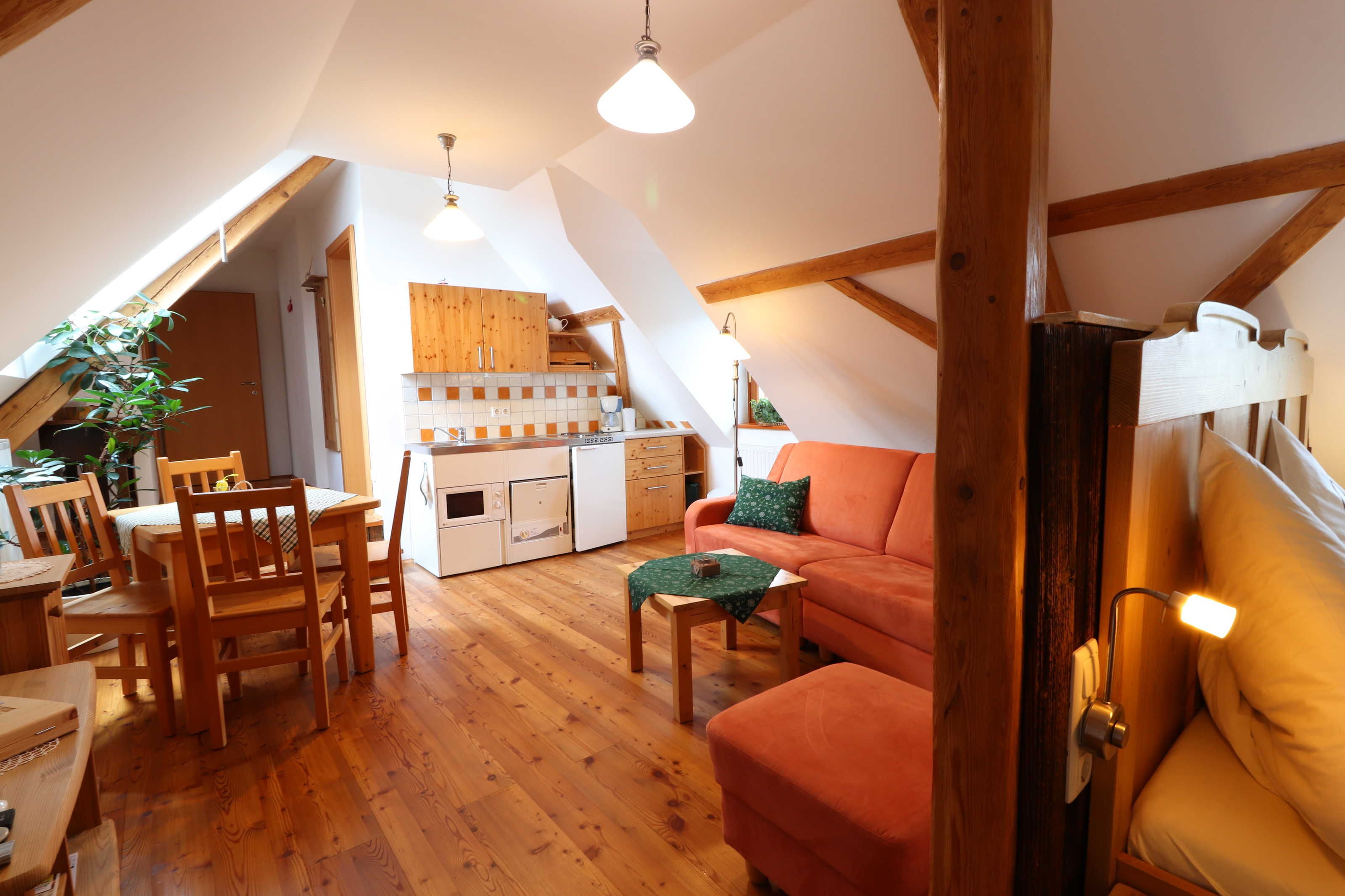Lust auf Zweisamkeit? Einfach entspannen in unserer romantischen Ferienwohnung für Zwei. Genießen Sie es, sprechen Sie es aus: „Ich liebe dich“. Der Duft geölter Lärchenböden gibt unserer (Ihrer) Ferienwohnung Laubwald einen ganz besonderen Flair. Vollholzmöbeln, teilweise aus Großmutters Zeiten, rundherum wertvolle Qualität. Der Laubwald ist mehr als nur ein Augenblick für Zwei!