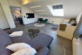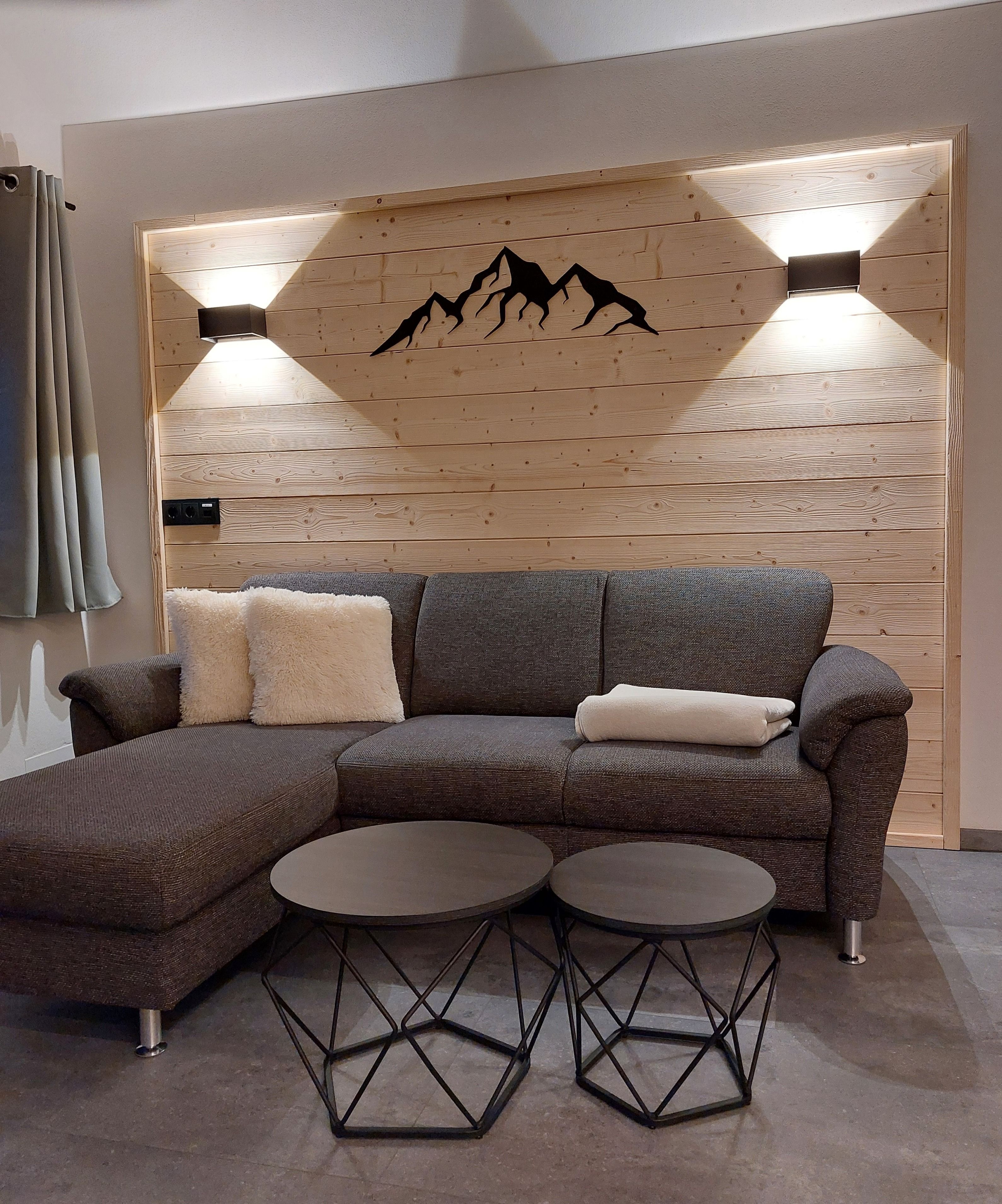 Wohnbereich mit gemütlichen Sitzgelegenheiten und Netflix, ebenfalls mit LED Beleuchtung
