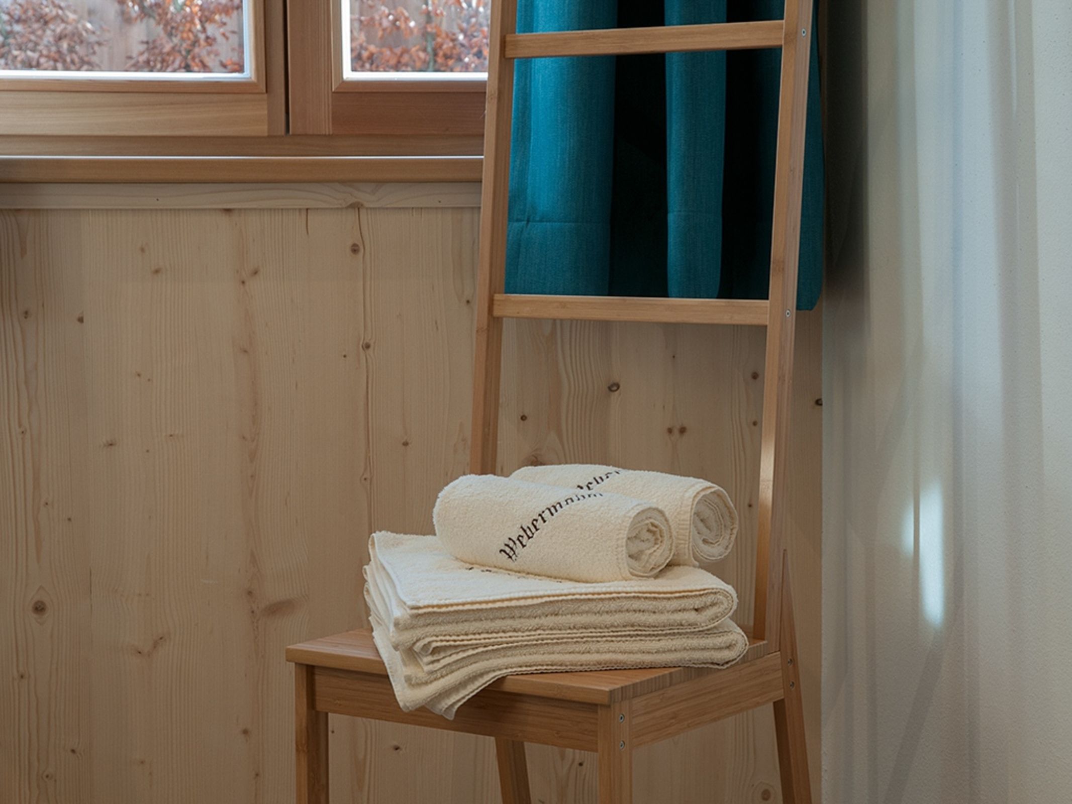 • Bademantel, Saunatuch und Badetasche für den Wellnessbereich