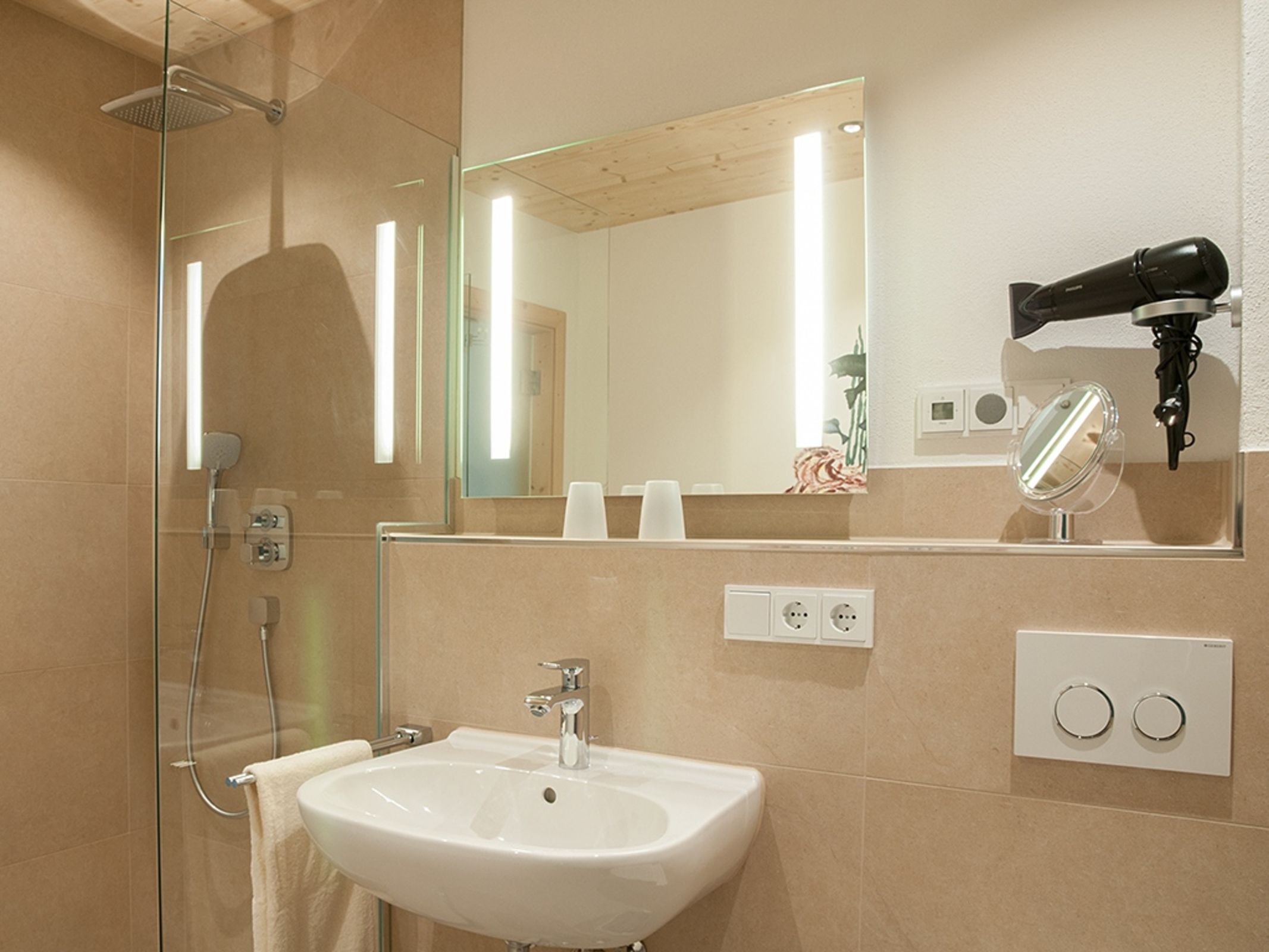 • Barrierefreies Bad mit Wohlfühldusche, WC und Föhn