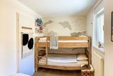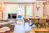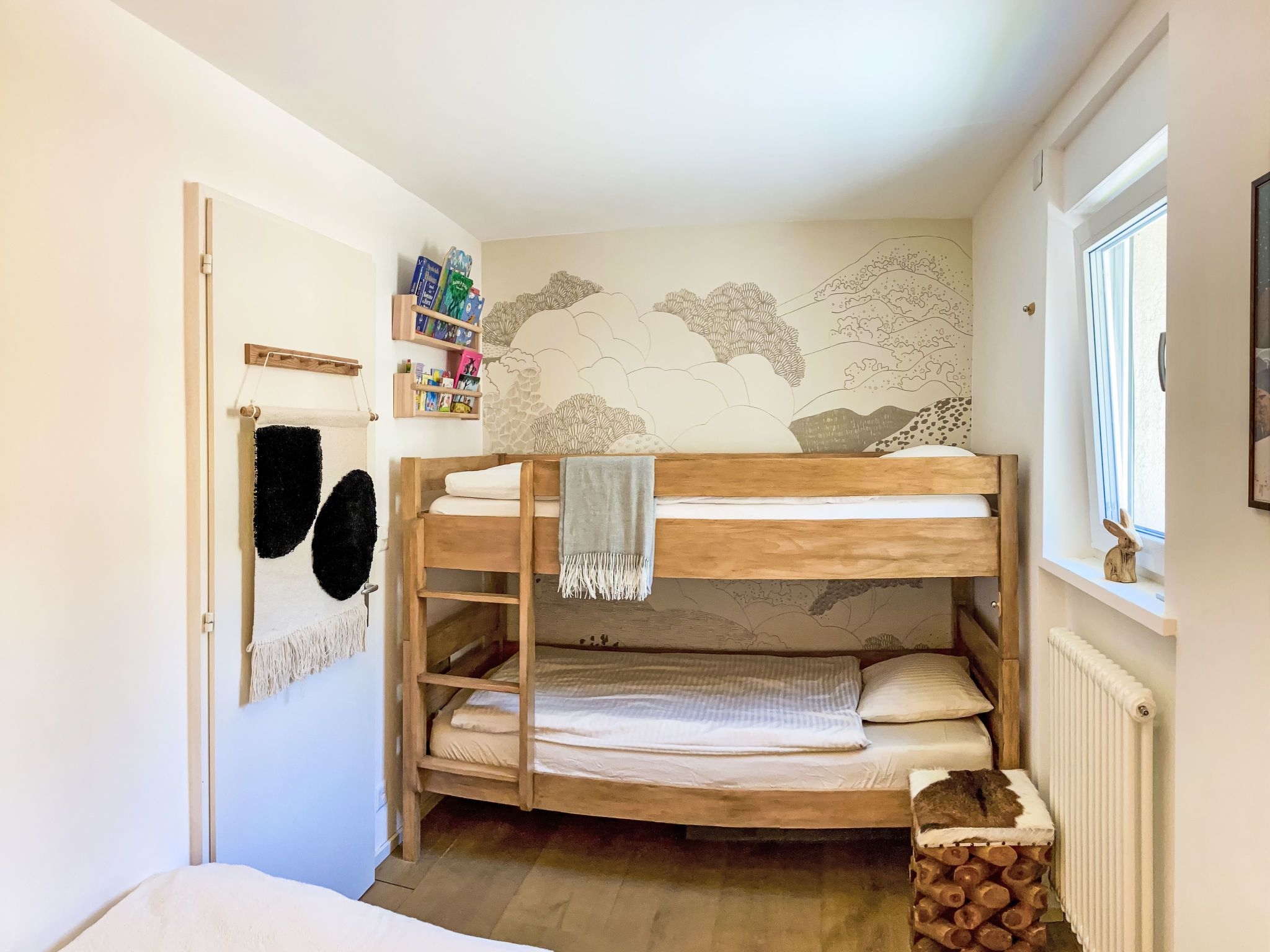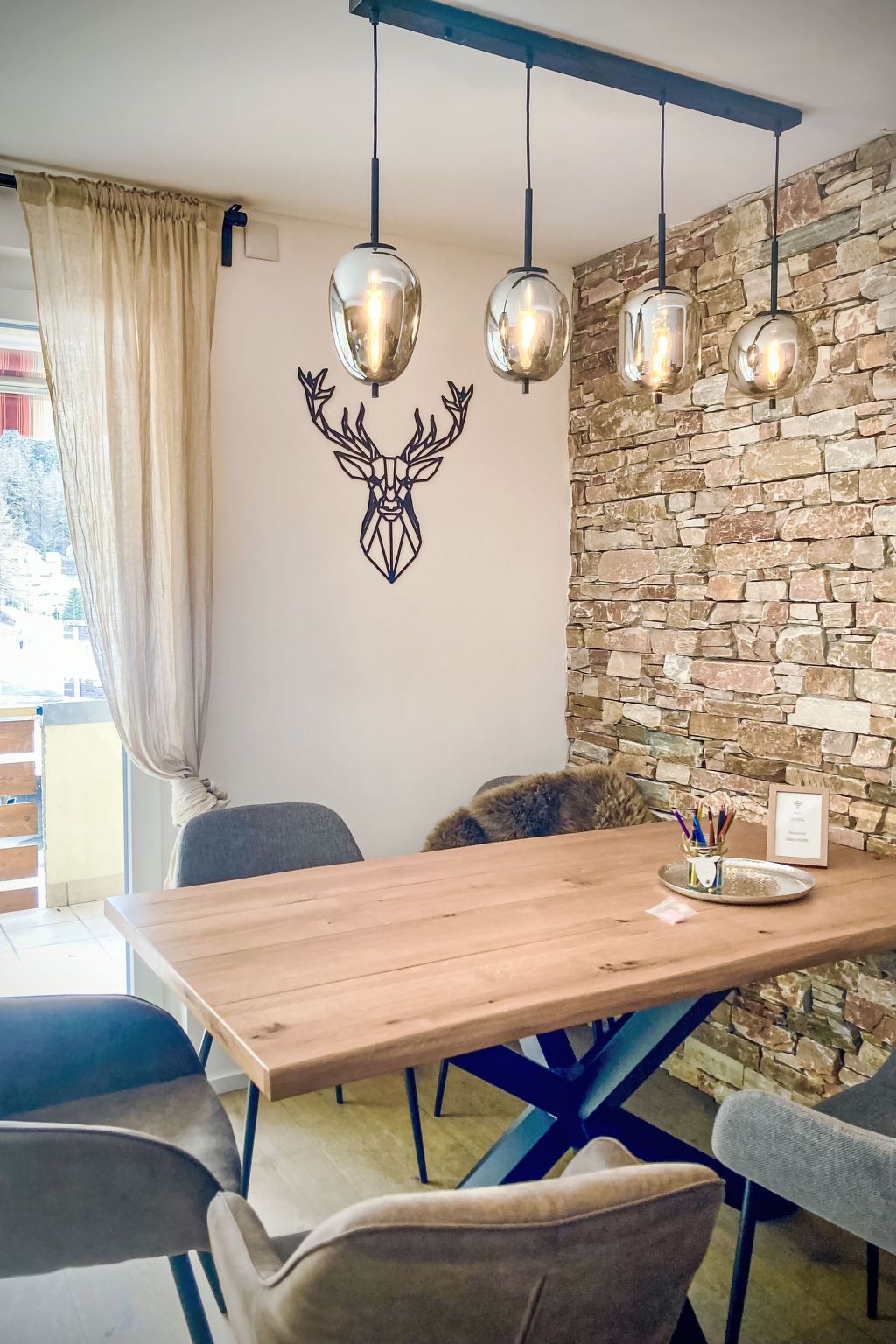 Haus Cristal, 3-Zimmer-Wohnung 60 m2 im 3. Stock. Vollständig renoviert, schön und stilvoll eingerichtet: offenes Wohn-/Esszimmer mit Esstisch und Digital-TV. Ausgang zum Balkon. 1 Doppelzimmer mit 1 Doppelbett (180 cm, Länge 200 cm). 1 Zimmer mit 1 x 2 Etagenbetten (90 cm, Länge 190 cm), 1 Doppelbett (140 cm, Länge 200 cm). Offene Küche (Backofen, Geschirrspüler, 4 Glaskeramikplatten, Toaster, Wasserkocher, Mikrowelle, Tiefkühler, elektrische Kaffeemaschine). Dusche/WC. Parkettboden. Balkon. Balkonmöbel. Schöne Sicht auf die Berge und die Ortschaft. Zur Verfügung: Internet (WLAN, gratis). Parkplatz (1 Auto). Bitte beachten: Nichtraucher-Unterkunft.