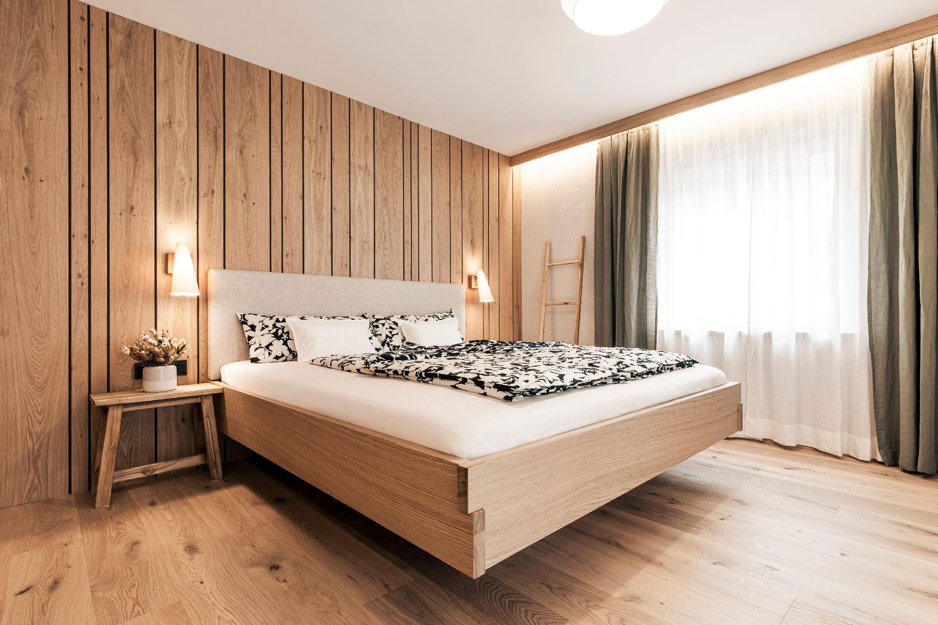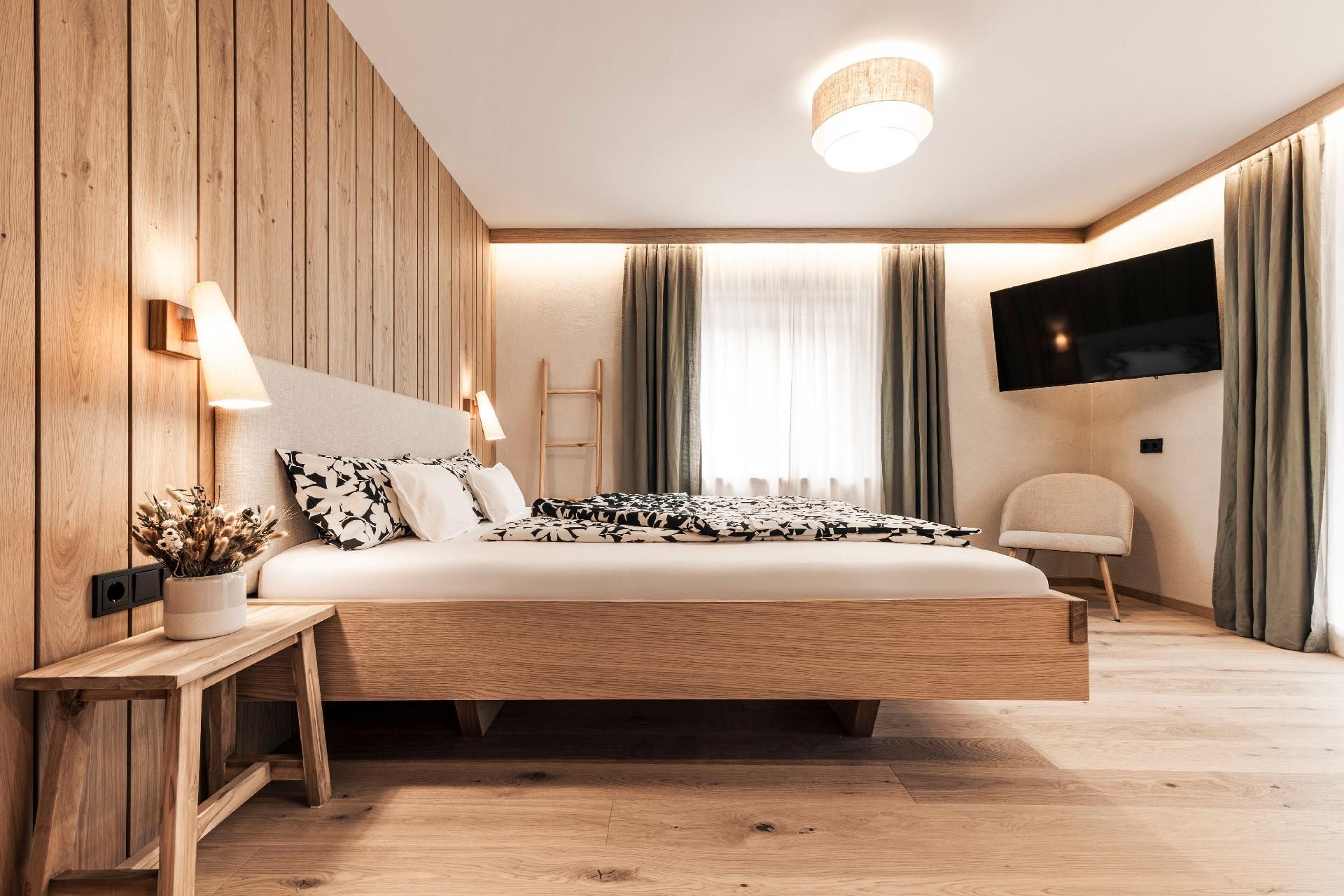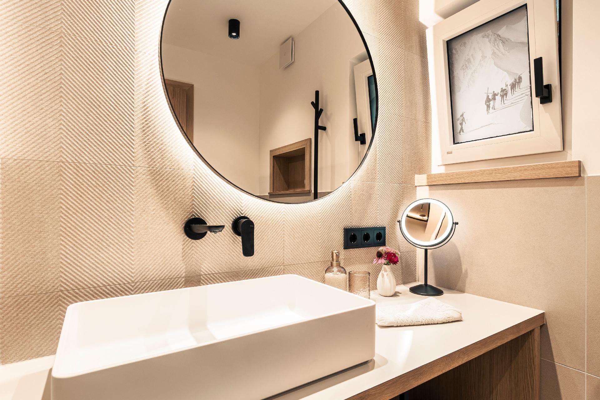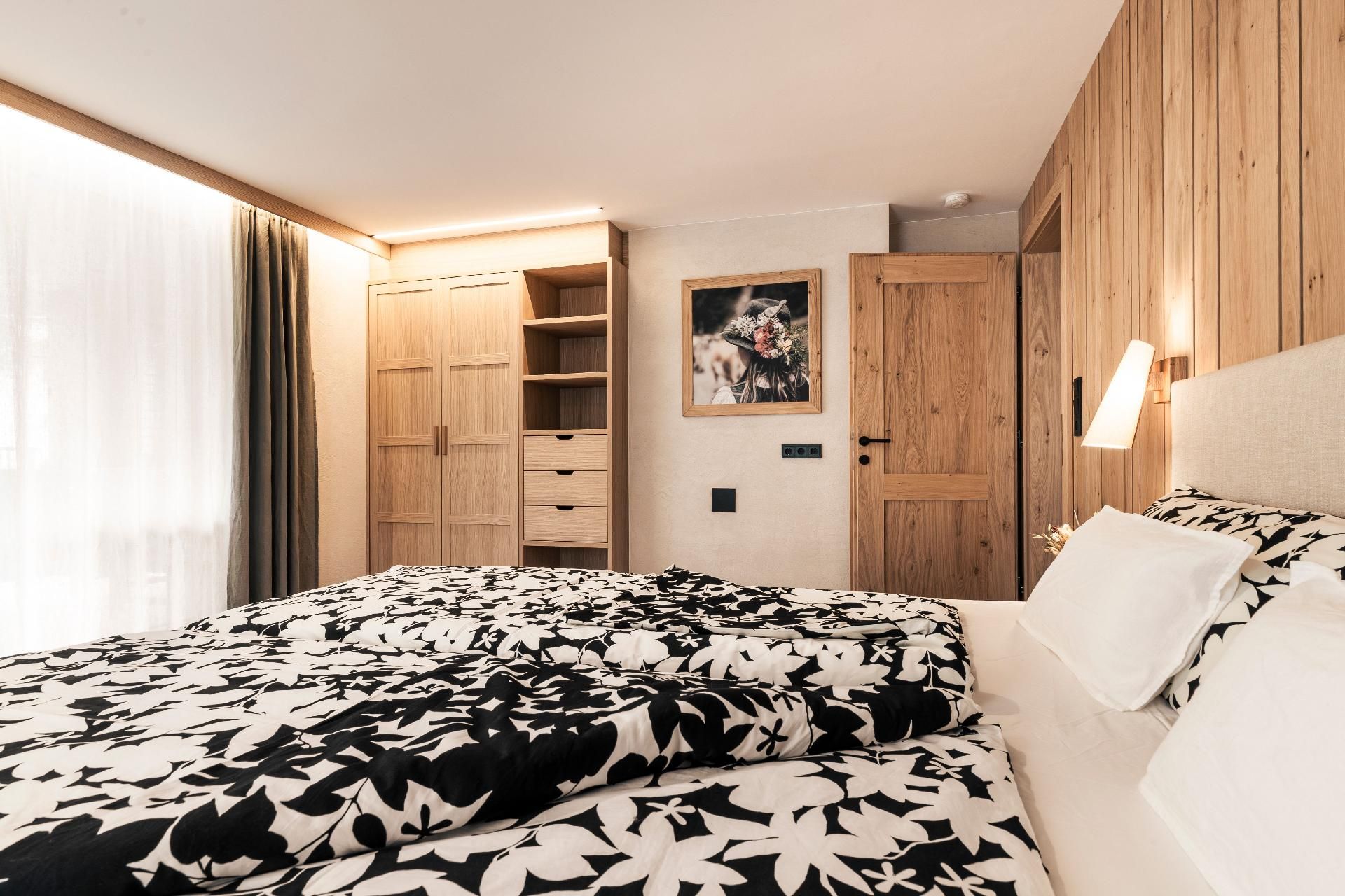 Das Apartment verfügt über zwei gemütliche Schlafzimmer, zwei moderne Bäder und einen Wohnraum in alpinem Charme, mit voll ausgestatteter Küche samt Holzherd, der für Wärme und Gemütlichkeit genutzt werden kann.
