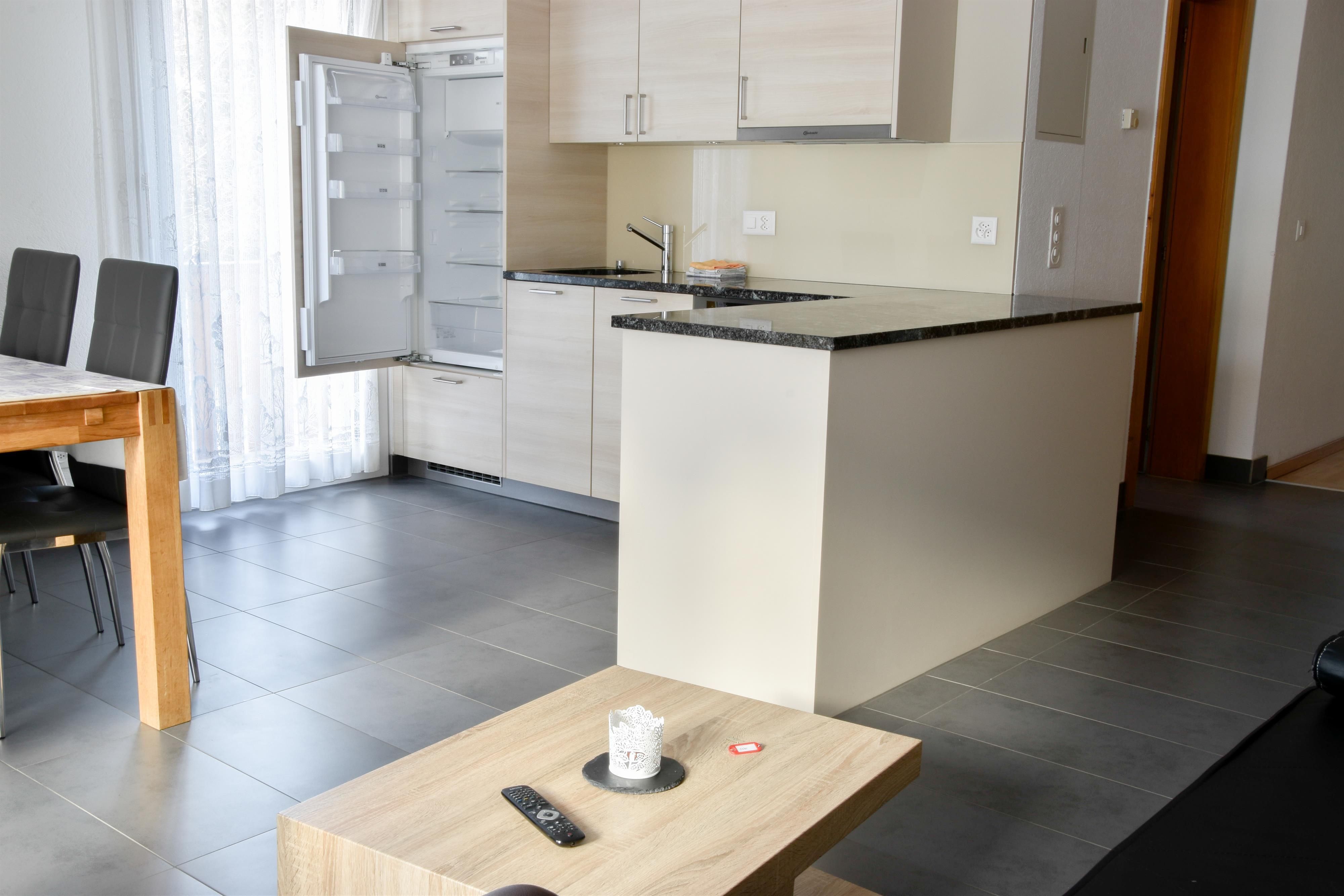 3-Zimmerwohnung neu renoviert Herbst 2011 im 2.Stock: 1 Schlafzimmer mit 3 Betten und Dusche/WC, 1 Doppelzimmer, Bad/WC, Wohnküche, Sitzgruppe, Geschirrspüler, TV, Zentralheizung, Südbalkon und Skikeller.