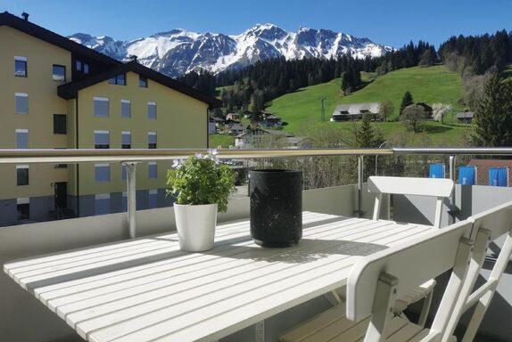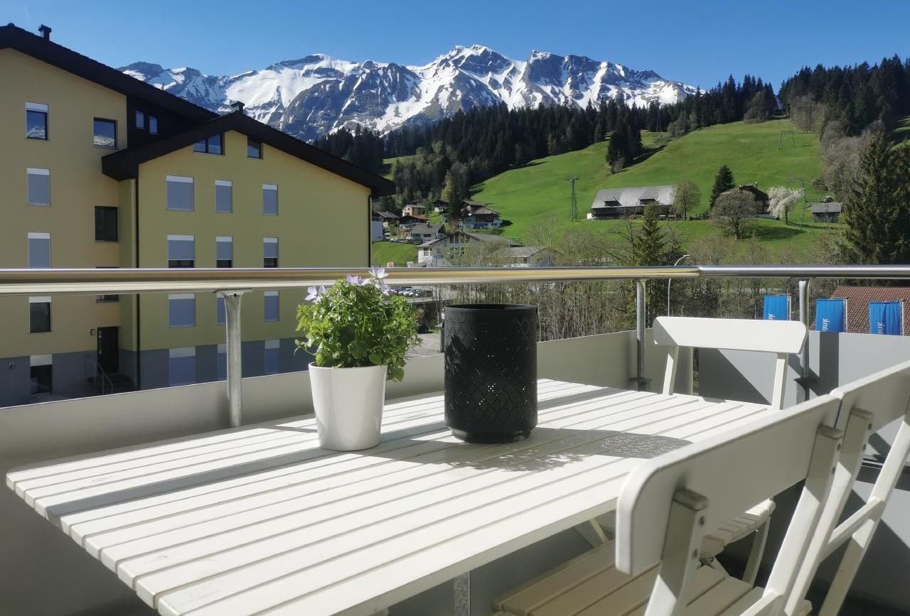 Sehr moderne, gemütliche und sonnige Ferienwohnung mit bis zu 6 Schlafplätzen, Cheminée und Balkon. Das Schlafzimmer ist mit einem Boxspringbett (1.80m), einem Etagenbett (1.40m), einem grossen Schrank sowie einem kleinen Schreibtisch ausgestattet. Im Badezimmer hat es eine Badewanne und ein WC (Haarföhn vorhanden). Das offene Wohnzimmer ist gemütlich eingerichtet mit einem Sofa (ausziehbar), einem Fernseher, Esstisch und vielen Spielsachen. Die offene Küche ist modern eingerichtet mit einem Induktionskochfeld und einem Umluftbackofen. Racletteofen, Fonduecaquelon, Toaster, Kaffeemaschine etc. ist alles vorhanden. Der sonnige Balkon mit Aussicht auf das Rothorn lädt zu gemütlichen Stunden ein. Parkplatz in der Tiefgarage. Waschmaschine, Sauna und Skiraum zur Mitbenützung.Die Wohnung ist an Toplage direkt im Dorfzentrum und 240 Meter von der Gondelbahn Rossweid und den Skilifts entfernt.
