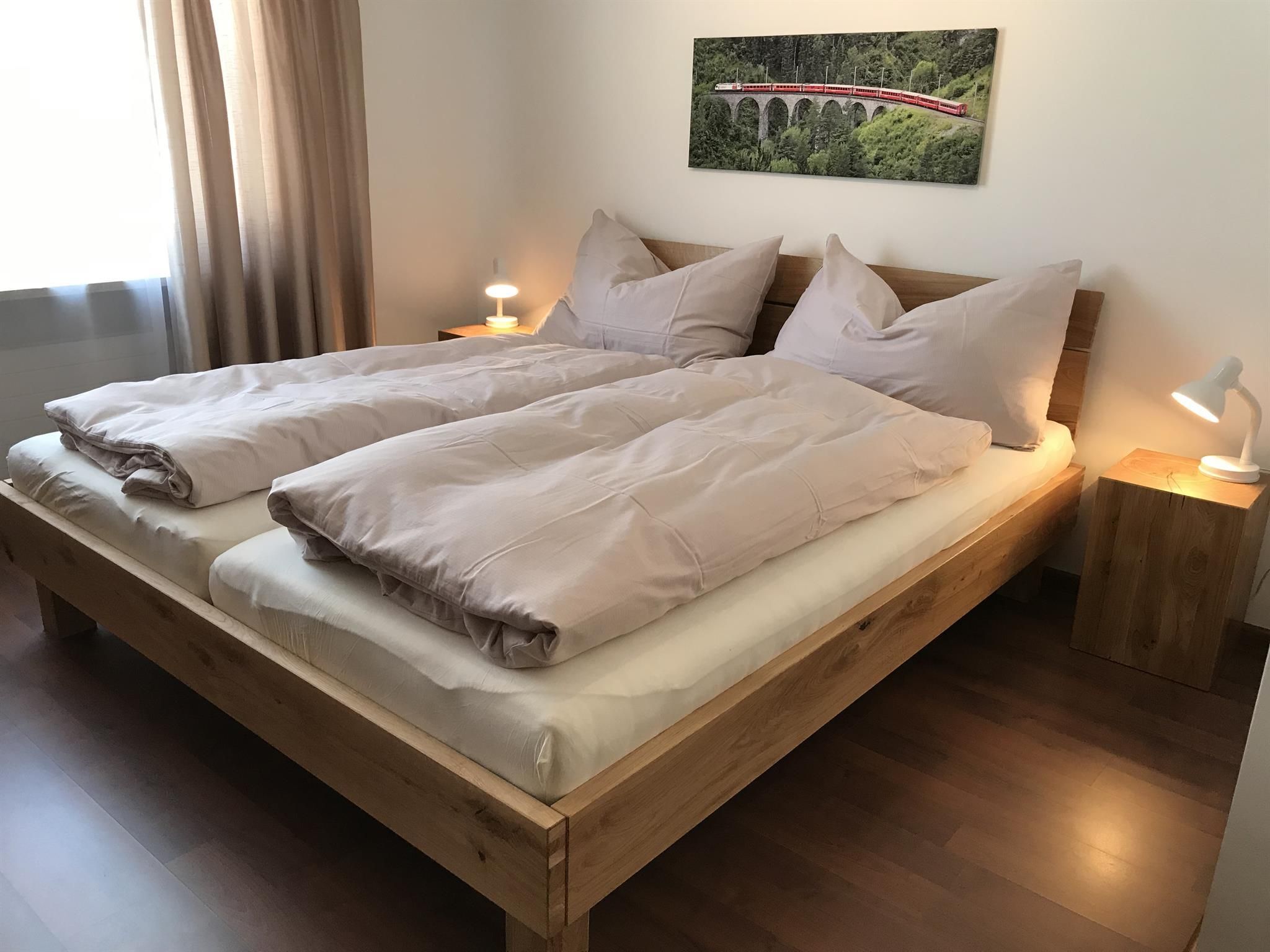 Moderne 3 ½ Zimmer-Wohnung (80 m2) im Hochparterre des Appartementhauses Chesa Plonta im Bünda-Gebiet; direkt am Bach (Landwasser), ruhige, sonnige und zentrale Lage: Bünda-Skilift und Langlaufloipe nur 100 m vom Haus entfernt, Einkaufsmöglichkeiten und Parsenn-Bahn sind in 5 - 8 min. zu Fuss erreichbar; separate Küche mit Glaskeramik-Kochfeld, Backofen, Kühlschrank und Geschirrspülmaschine, Nespresso Kaffeeemaschine; grosses Wohn-/Esszimmer mit grossem Südbalkon (Parsennsicht), Cheminée, Radio und Flachbildschirm TV, W-LAN; 2 Schlafzimmer mit je einem Doppelbett (Duvet nordisch); modernes Bad mit Badewanne, grosser Duschkabine, WC, separates zweites WC; Garage; Skiraum, Waschmaschine und Tumbler stehen zur Mitbenützung zur Verfügung; Miete der Bett-, Frottee- und Küchenwäsche inklusive (obligatorische Nebenleistungen); Nichtraucher-Wohnung; Haustiere sind nicht erlaubt.