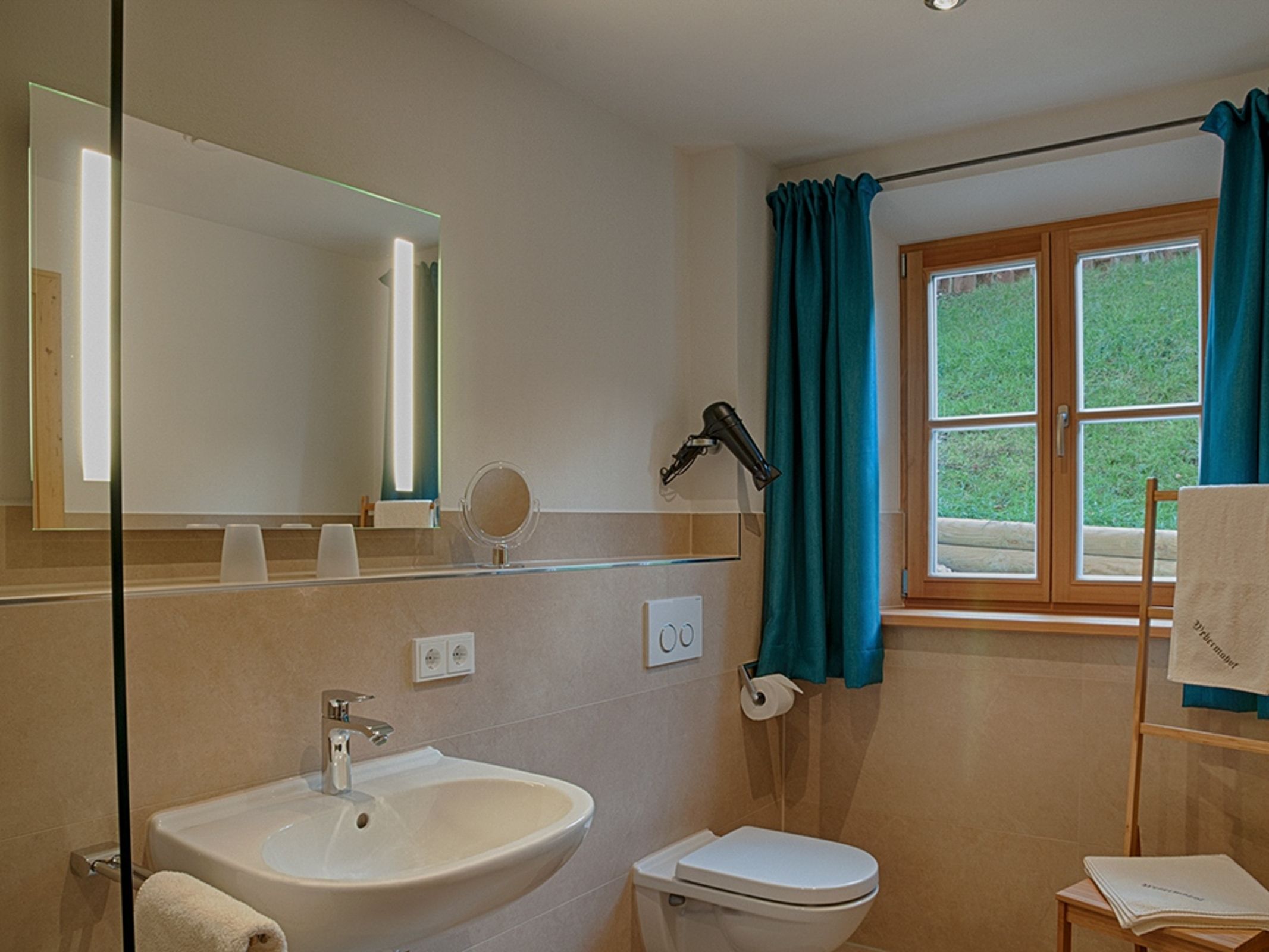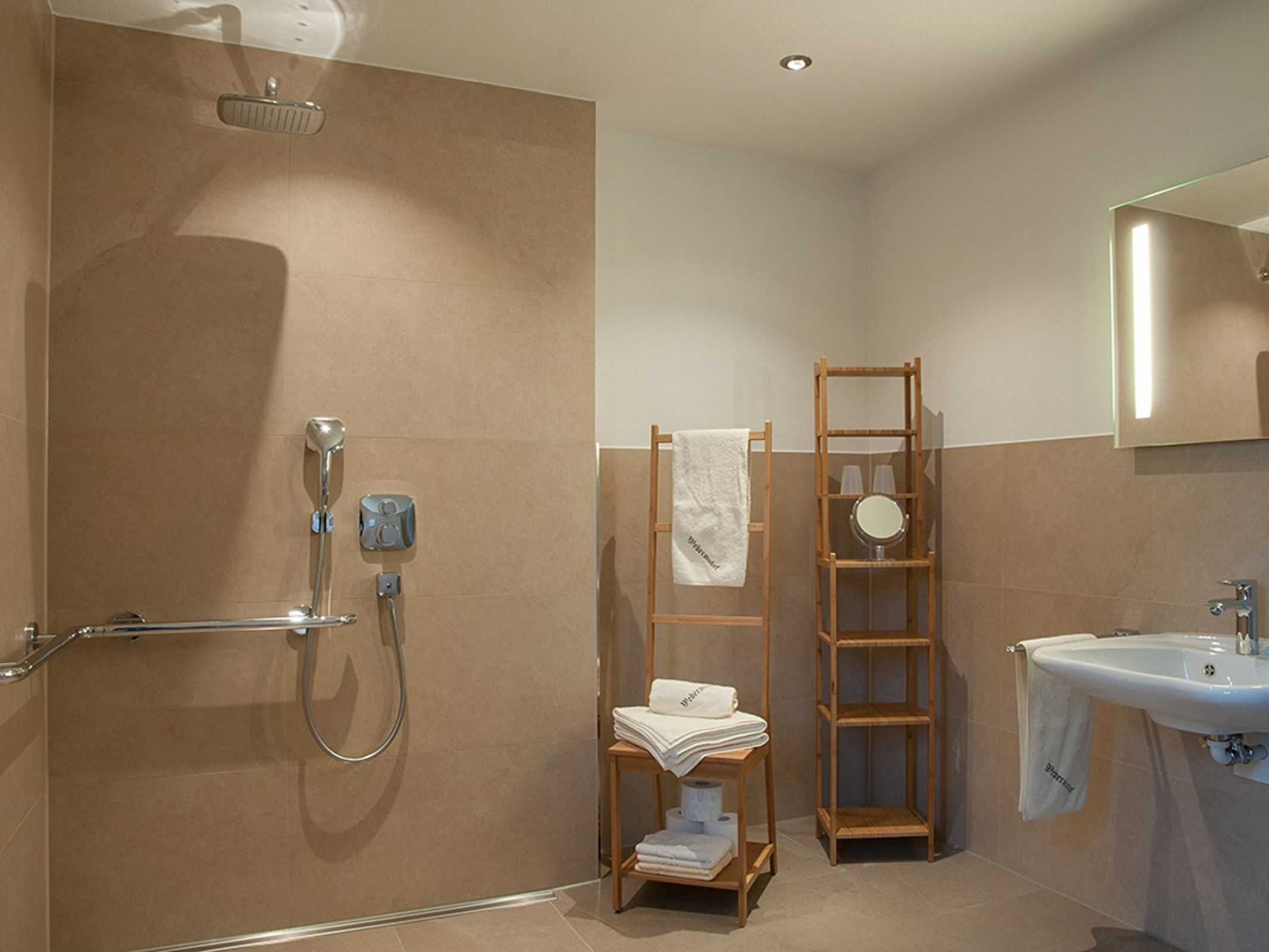 • Ein barrierefreies Bad mit Wohlfühldusche, WC und Föhn