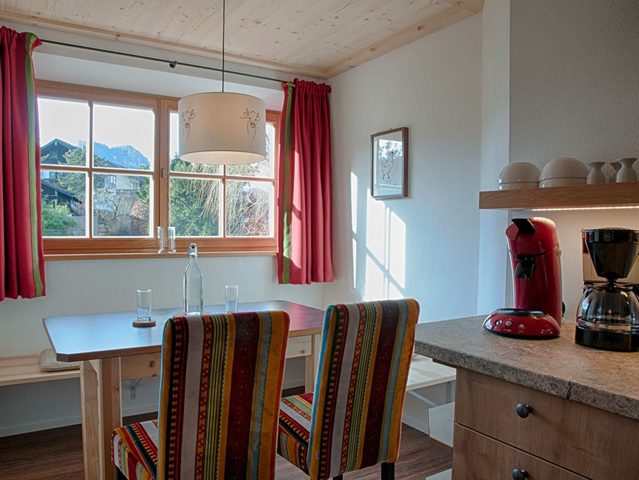 • Gemütliches Wohnzimmer mit Essecke und Flachbild-TV