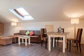 • Gemütliches Wohnzimmer mit Essecke und Flachbild-TV
