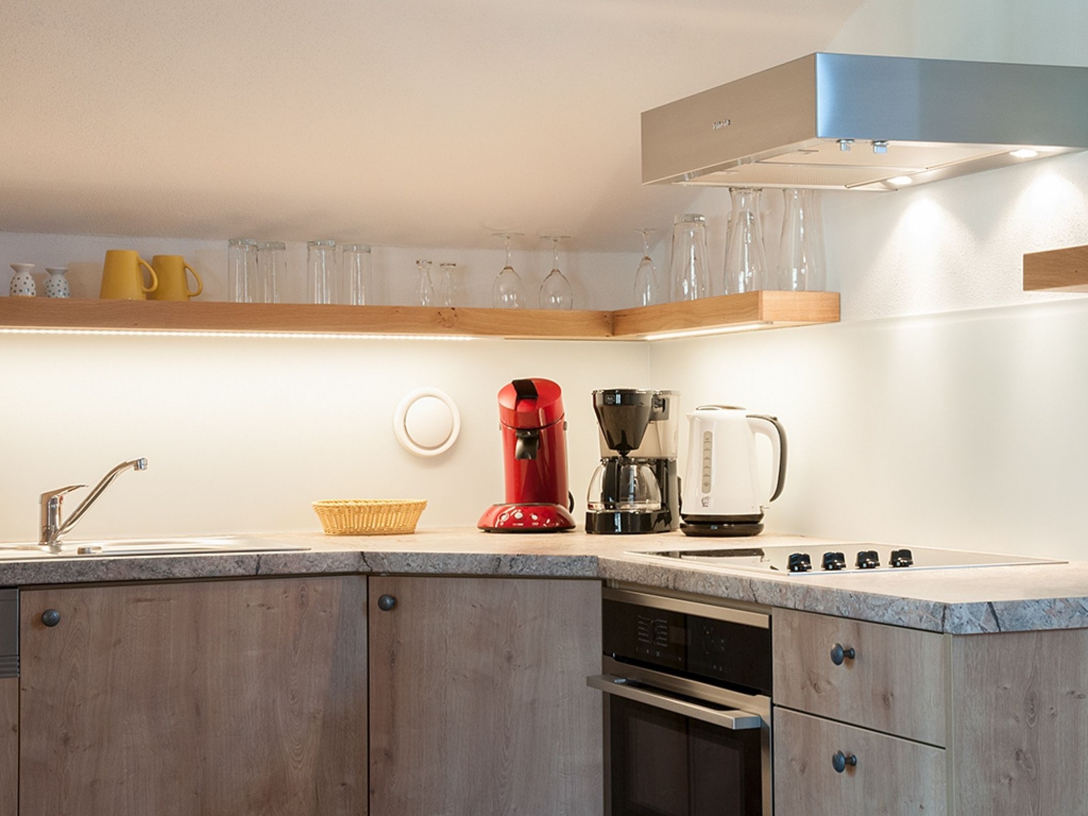 Unsere Ferienwohnungen sind alle individuell und hochwertig im oberbayerisch-alpinen Stil eingerichtet. Ein gläserner Aufzug bringt Sie direkt in Ihre Traum-Ferienwohnung.