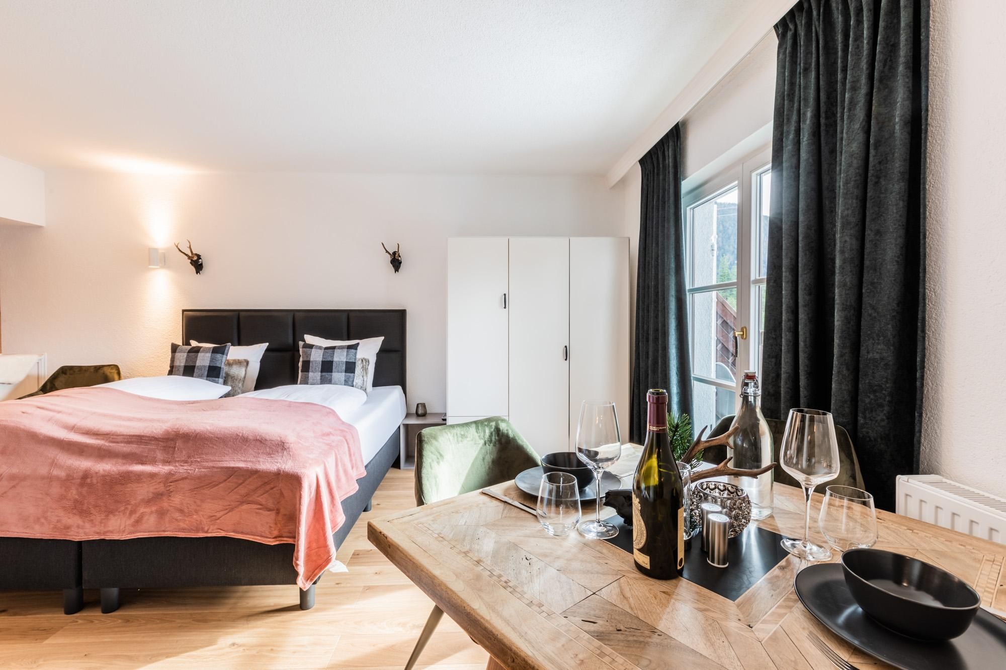 Das VIEW STUDIO ist buchbar für 1 - 4 Personen. Diese Wohnung ist im ersten Stock des im SPA Retreat. Es ist eine 1 Zimmer Wohnung (Top 4). Diese bietet einen Eingangsbereich, eine Küche, ein Wohnzimmer mit Schlafcouch und Doppelbett. Vor dem Wohnzimmer befindet sich ein wunderschöner Südbalkon mit tollem Ausblick auf die umliegende Bergwelt - und den Garten. D