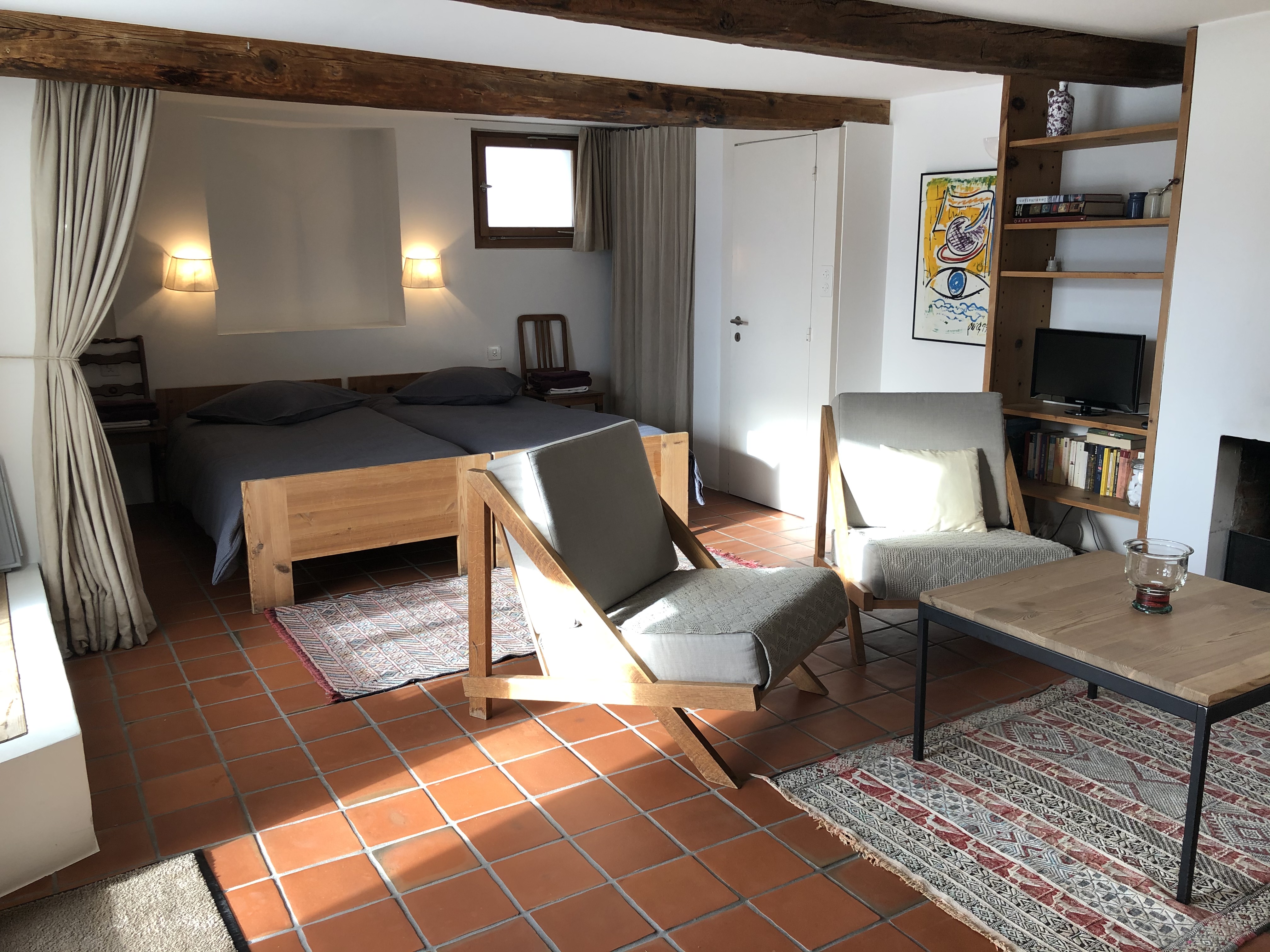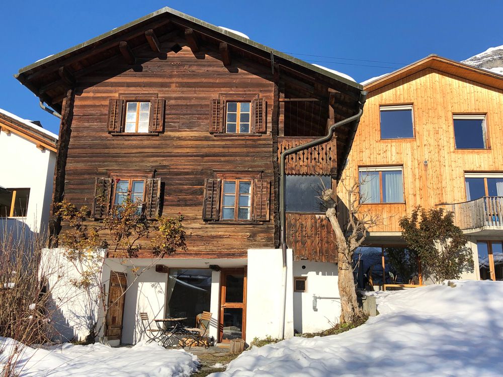 Die gemütliche Einzimmerwohnung wurde 1972 vom preisgekrönten Flimser Architekten Rudolf Olgiati, geplant und eingebaut. Schöner Blick nach Süden auf den Garten und die dahinter liegenden Berge. Es gibt ein Badezimmer mit Badewanne/Dusche und ein separates WC. Zur Wohnung gehört zudem ein Aussenparkplatz, direkt vor dem Haus.