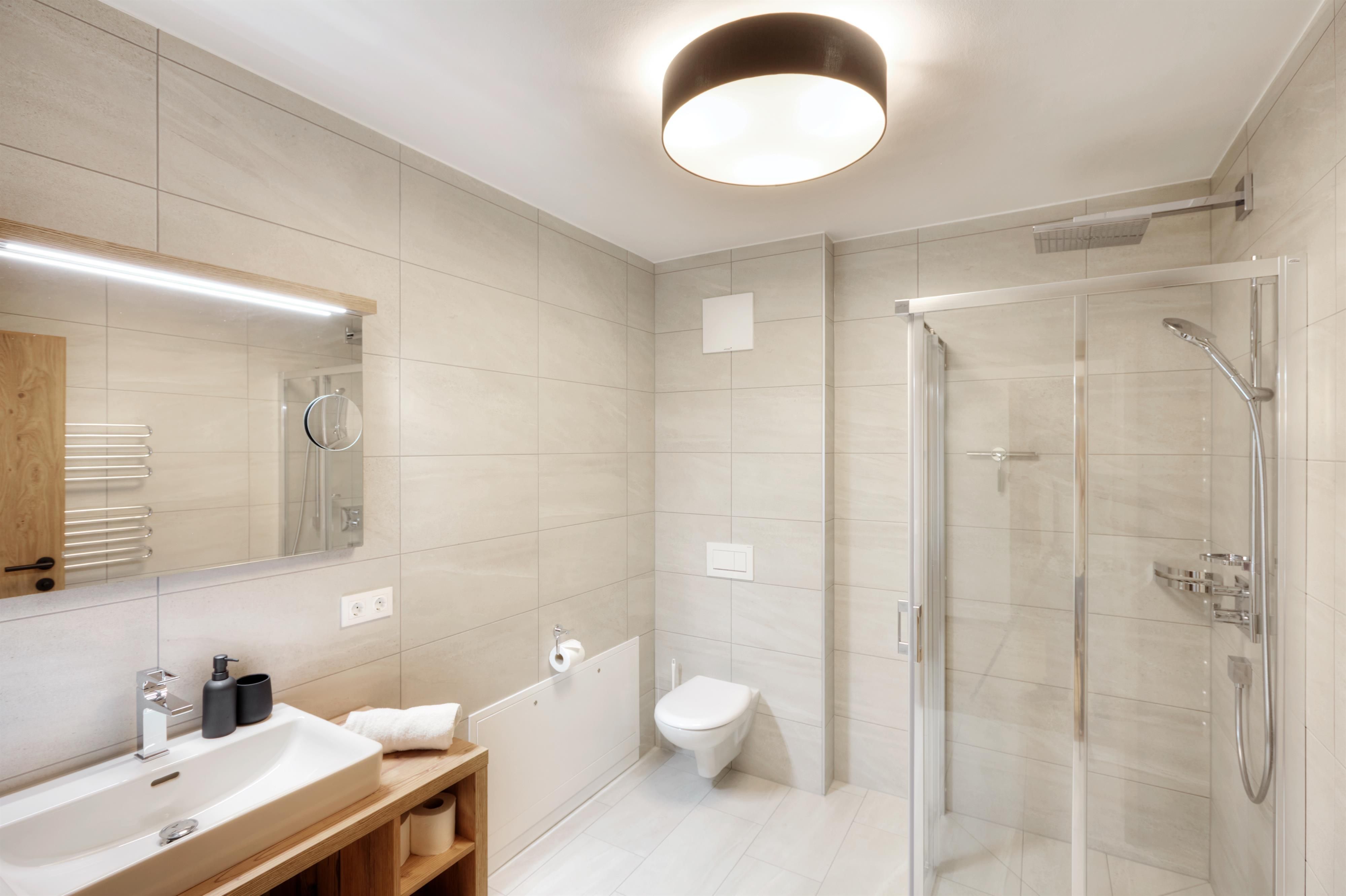 • Badezimmer mit Regendusche, beheizter Handtuchhalter