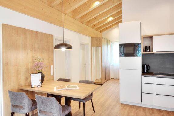 Der gemütliche Wohnbereich bietet reichlich Platz für gesellige Abendessen mit Ihrer Familie. Genügend Stauraum steht Ihnen in den Apartments für Garderobe, Sportequipment zur Verfügung. Das Alpenstolz bietet einen separaten Skiraum und Fahrradraum. In Gehnähe zur Unterkunft befindet sich der Skilift Oberdamüls (200m) und der Dorfkern mit Lebensmittel- und Sportgeschäft.