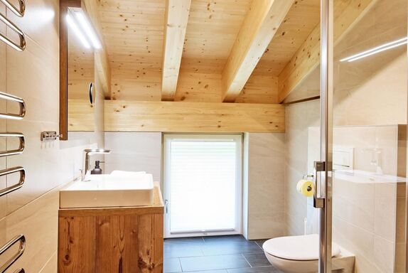 • Badezimmer mit Dusche und WC, beheizter Handtuchhalter