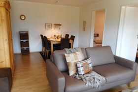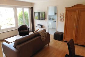 3 Zimmerwohnung, 60 qm (5 Betten) in wenig bewohntem Mehrfamilien-Ferienhaus an sonniger Lage Abseits des Durchgangsverkehrs. Aus der Wohnung freie Panoramasicht auf die Berge. Grosse, gedeckte Terrasse gegen Süden. Auf der gleichen Etage: separater, abschliessbarer Abstellraum für Koffer und teure Sportgeräte. Skiraum mit Schuhtrockner, Waschmaschine, Tumbler und Gebläsetrockner zur Mitbenutzung. 4 Minuten Fussweg zur Busstation, 5 Minuten ins Dorfzentrum und 7 Minuten zum See. Reservierter Parkplatz. Jugendliche nur in Begleitung einer Erwachsenen Person. Keine Haustiere.