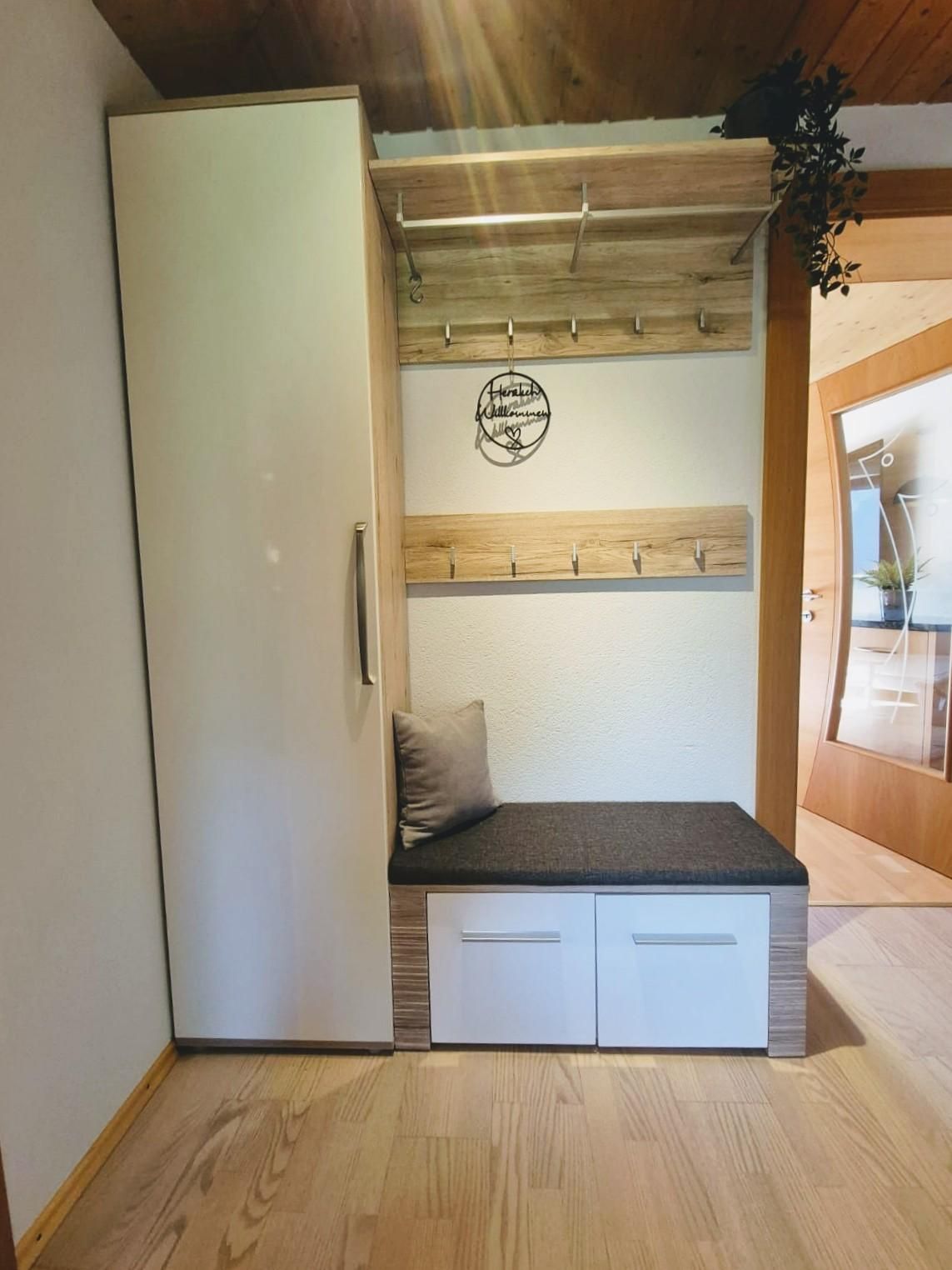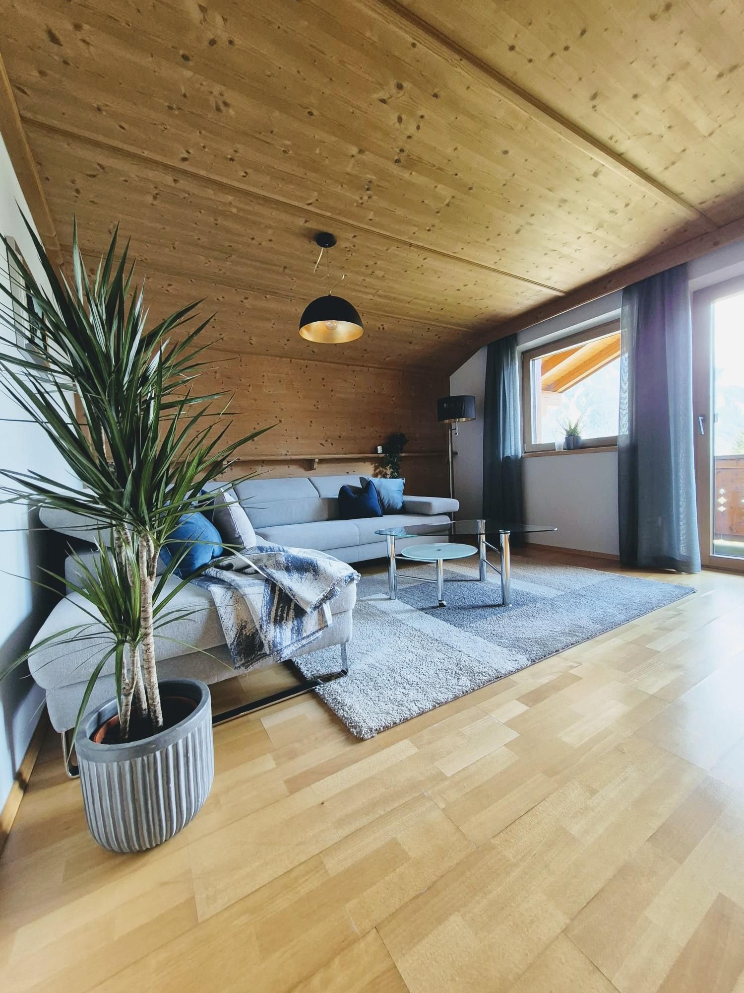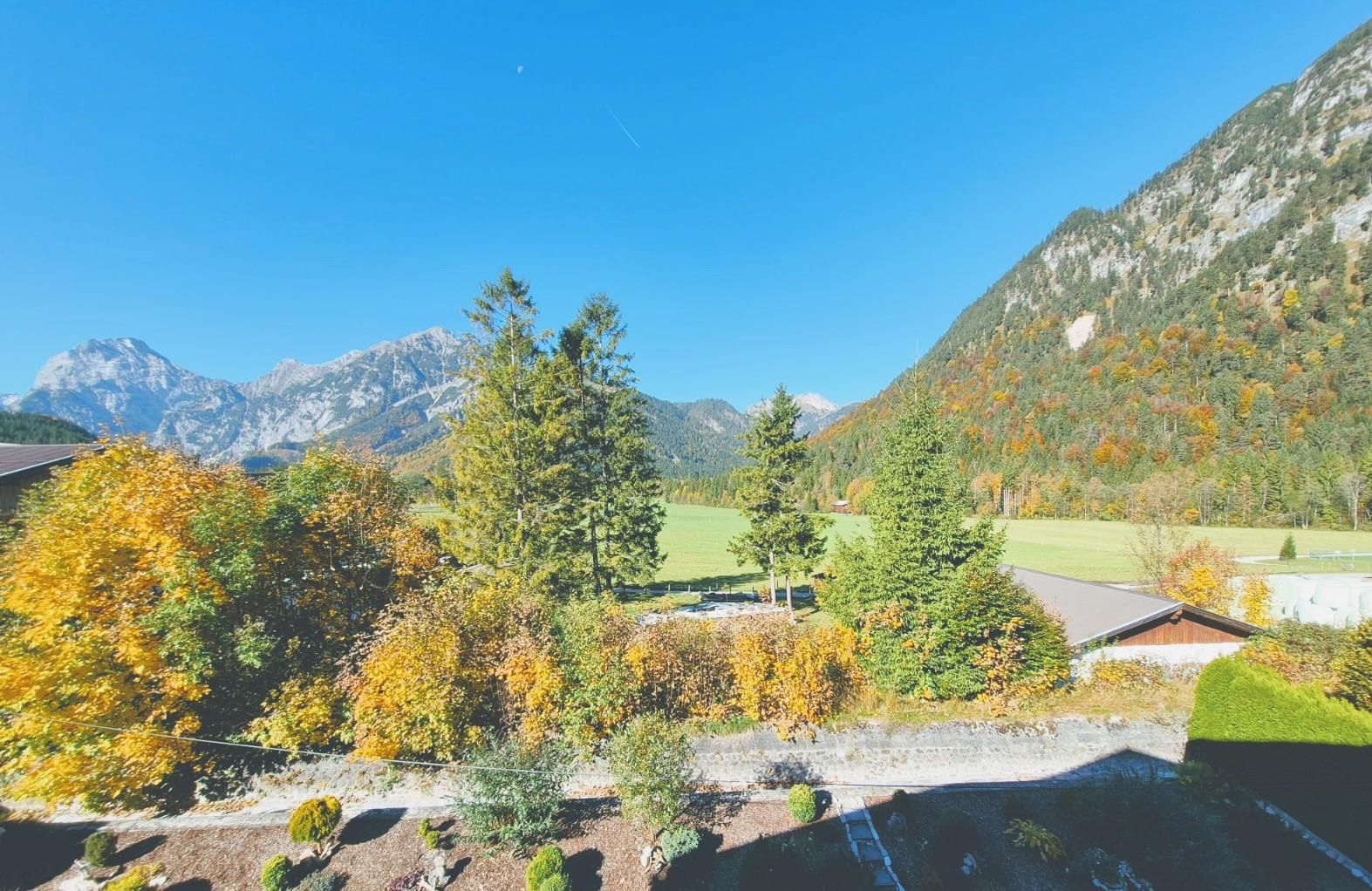 Genießen Sie Ihre Auszeit in einem Apartment mit einem herrlichen Blick auf die umliegende Bergwelt des Karwendel und Rofan. Die Kombination aus warmen Materialien und liebevollen Details schafft ein Ambiente, das zum Entspannen und Wohlfühlen einlädt.