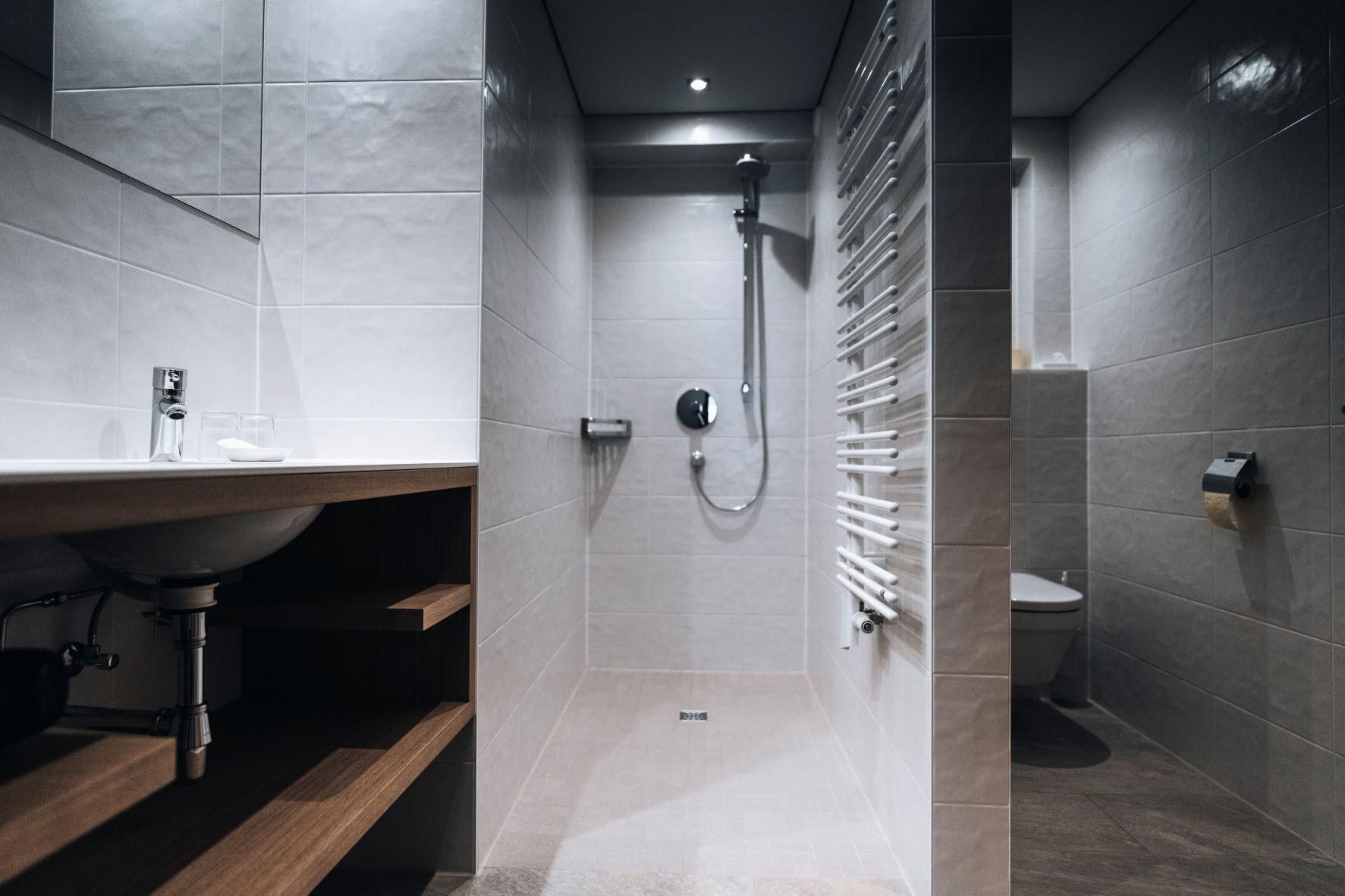 • Badezimmer (5,5 m²): Neuer, barrierefreier Sanitärbereich mit großer Dusche & WC